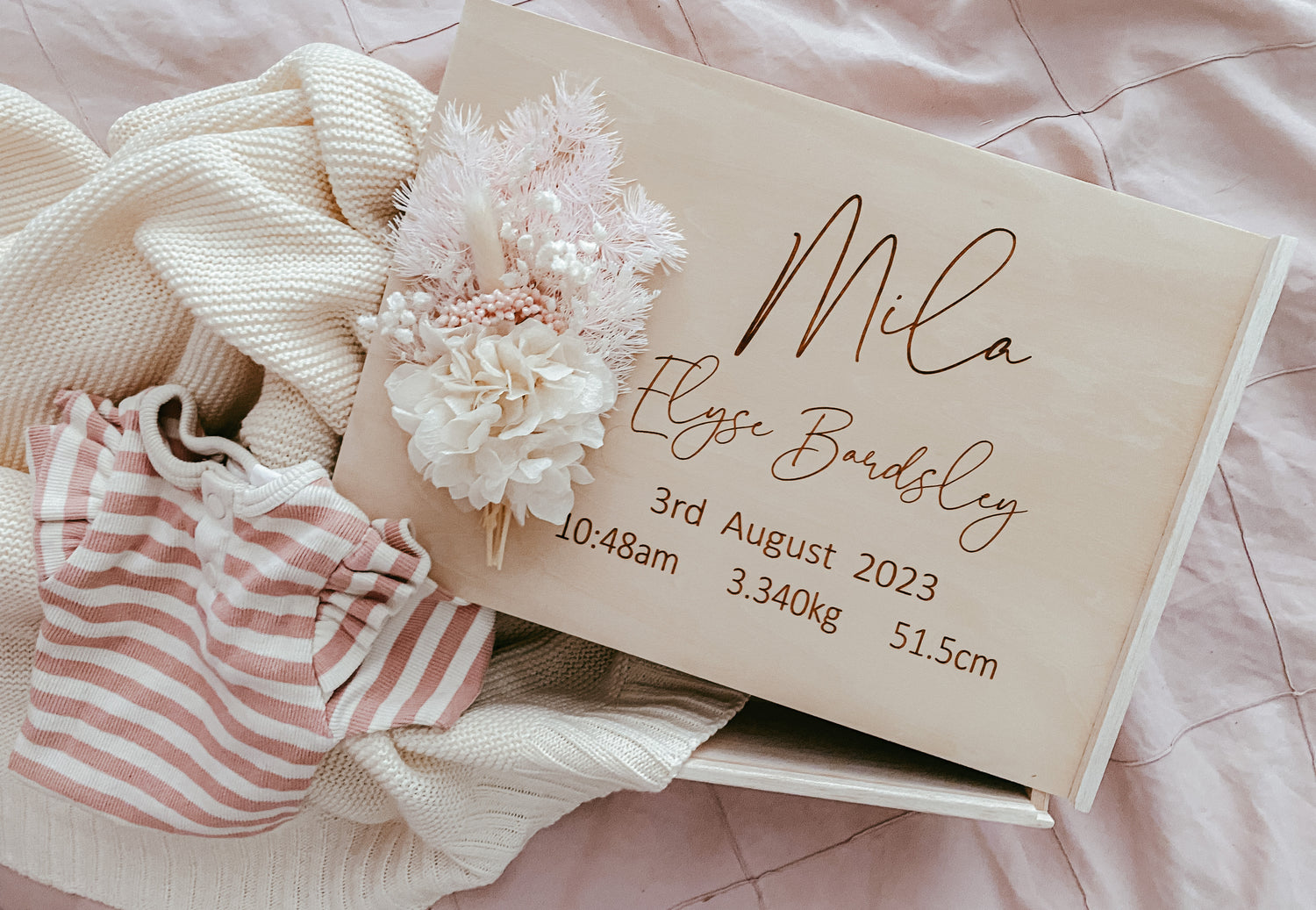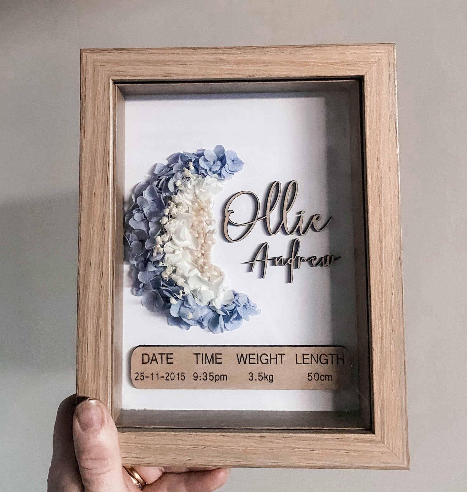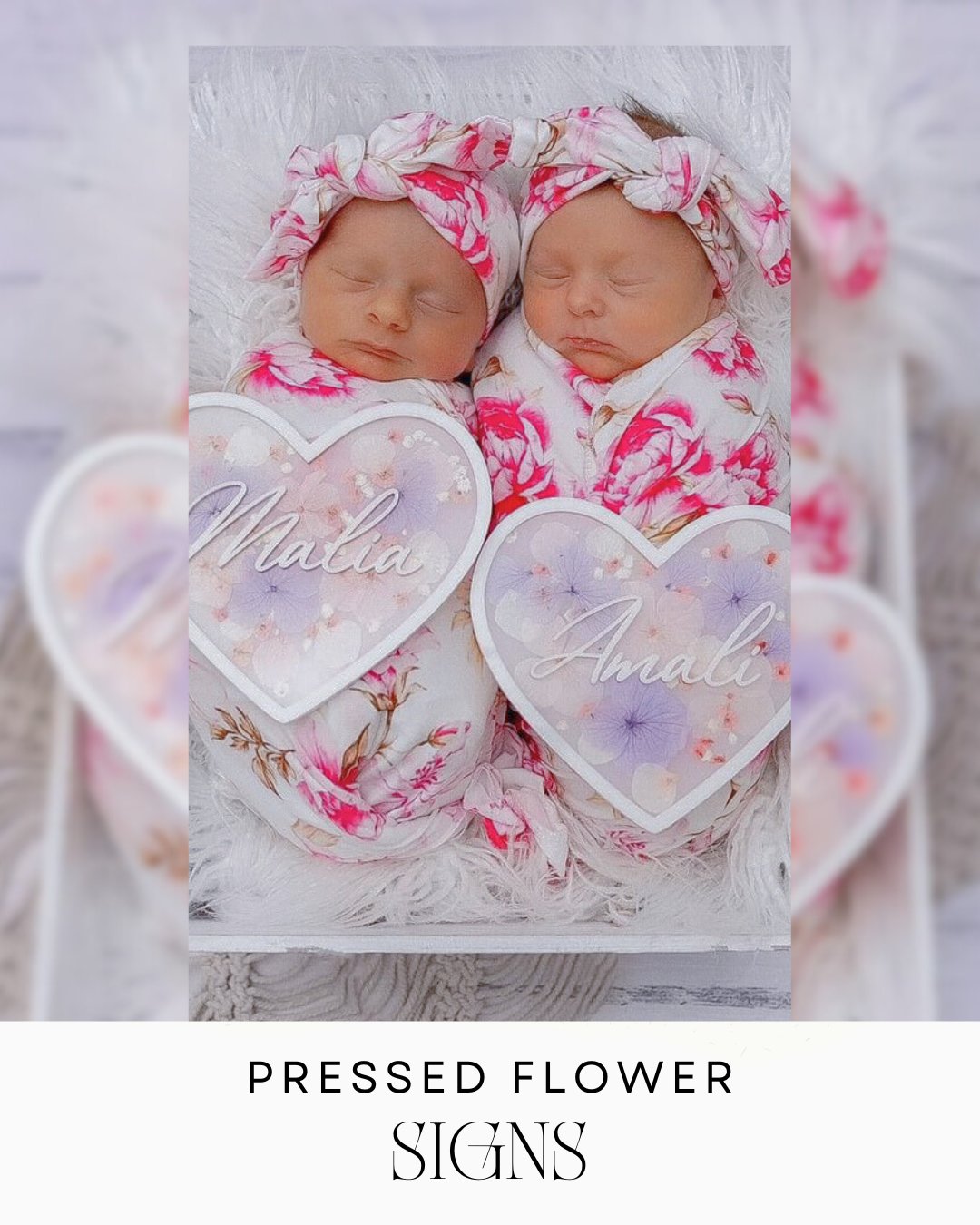 Shop our deluxe range of dried floral birth announcements. Perfect photo prop...