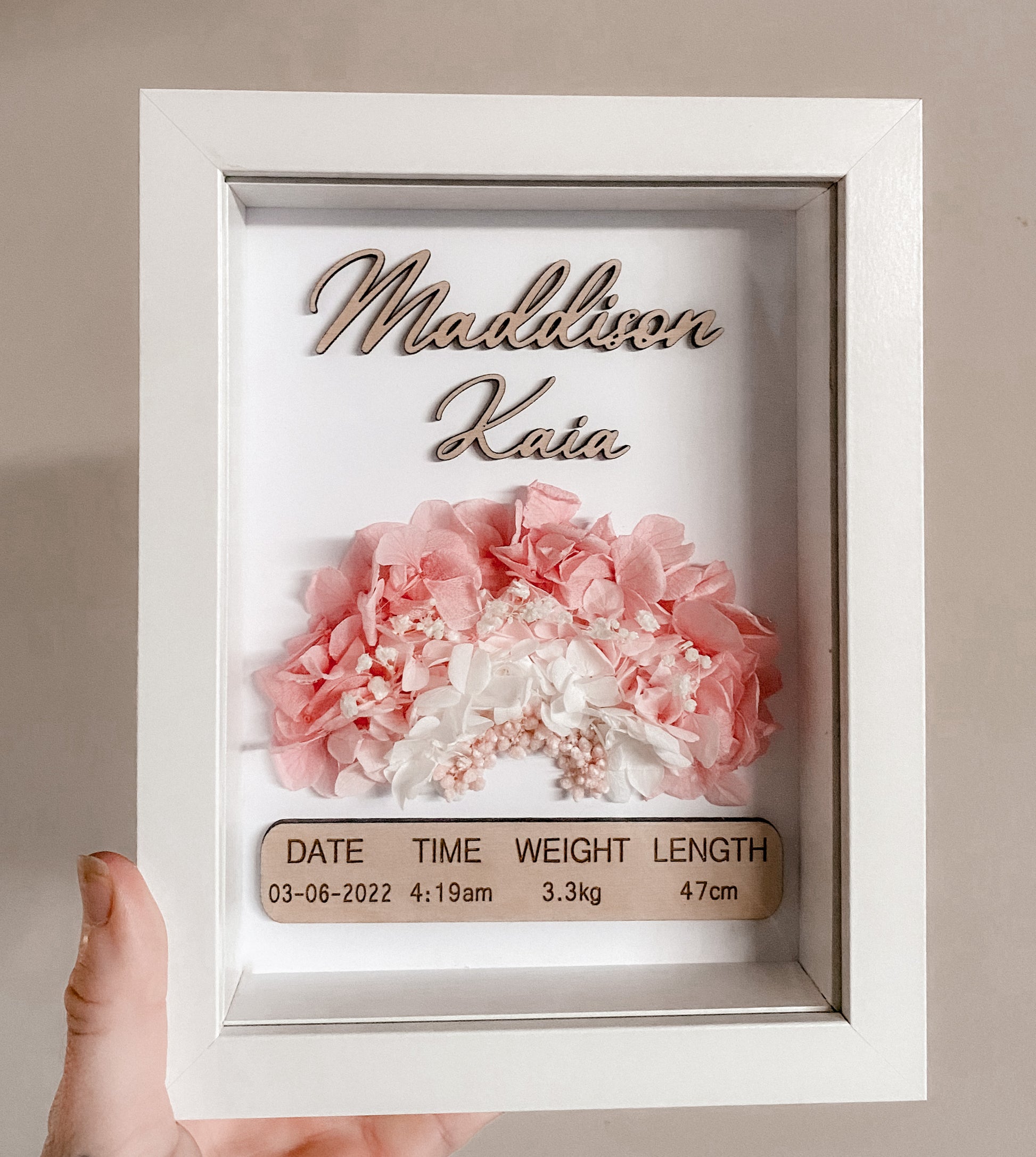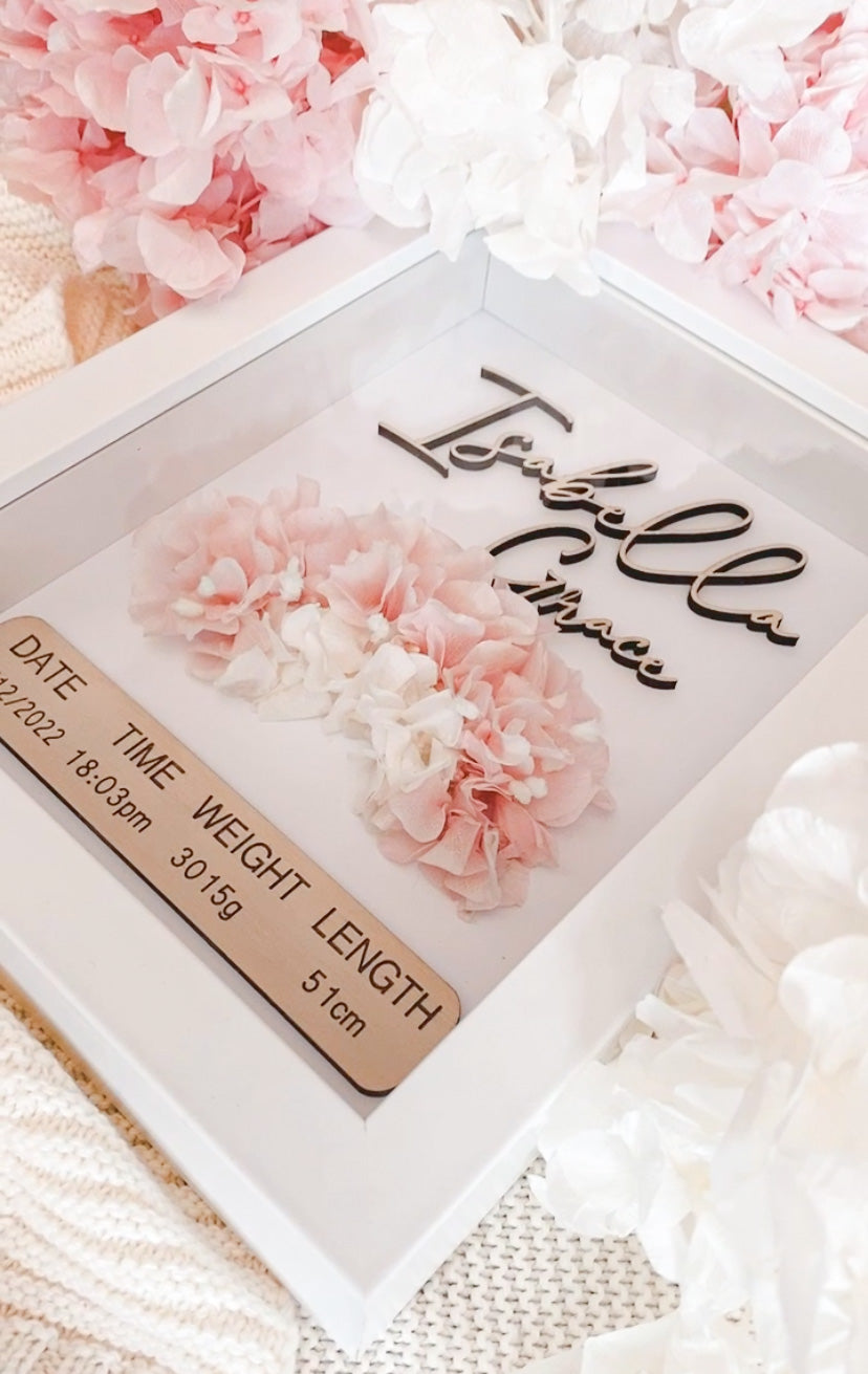 Introducing our beautiful keepsake frames, that have all the sweet details of your little ones birth in them plus a beautiful floral piece!