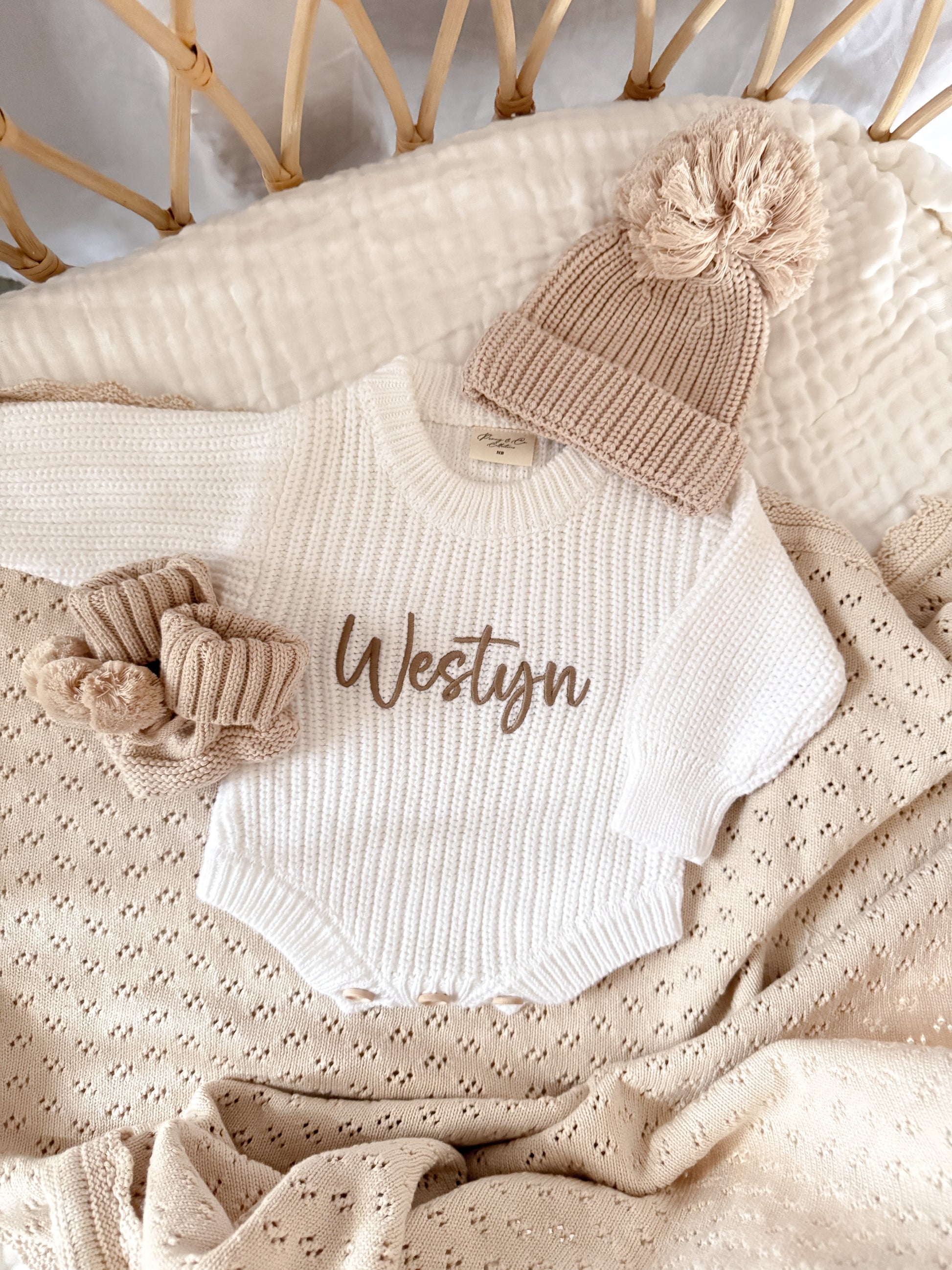 Chunky knit baby birth announcement romper
