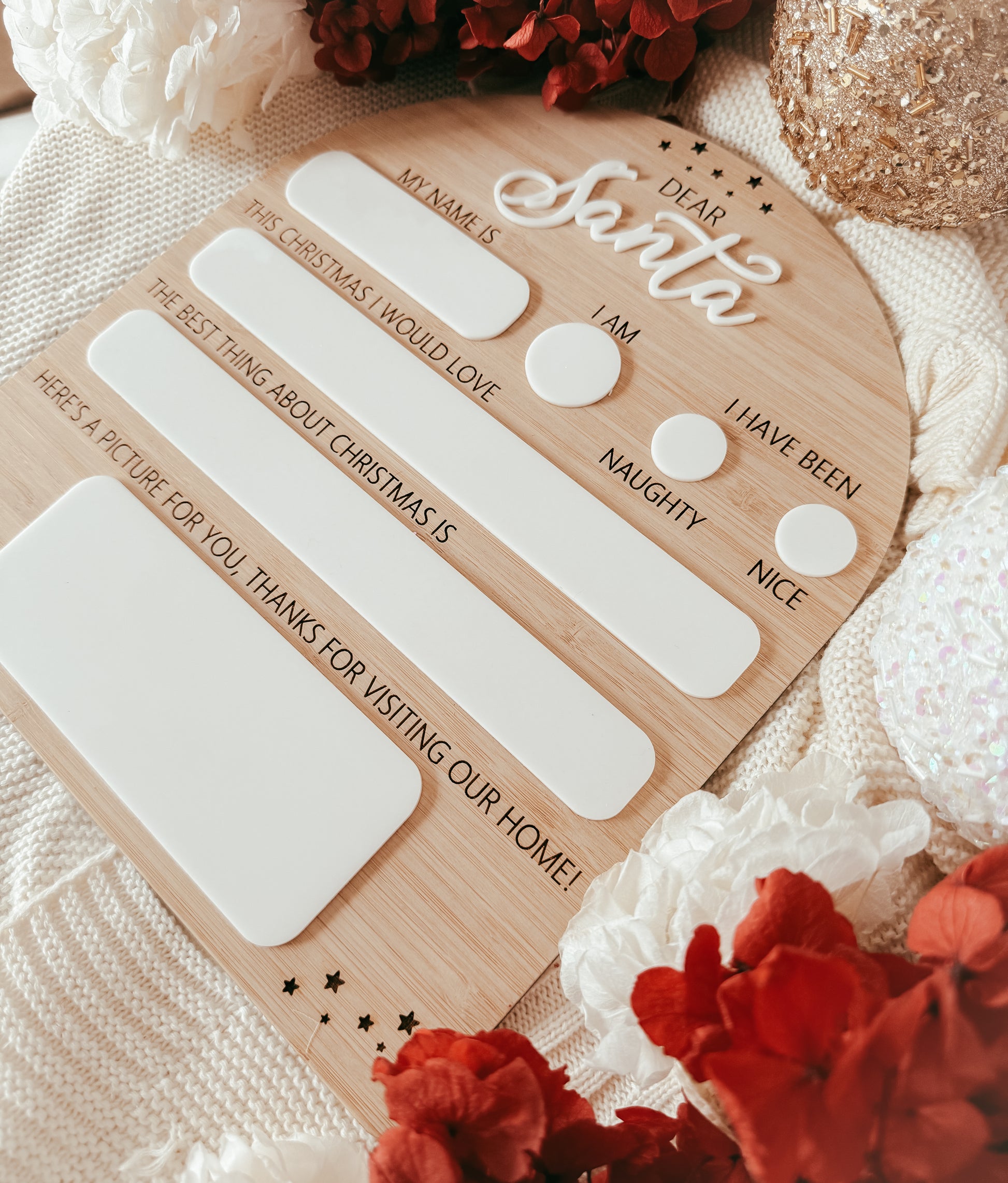 Leave a message to Santa on Christmas Eve, even let you little ones draw a picture! This beautiful piece is made on bamboo with acrylic to write on, all you need is a whiteboard marker NOT permanent marker, and you wipe off after use! This is the “I am” version and cannot be personalised Roughly 30cm high and 25cm wide