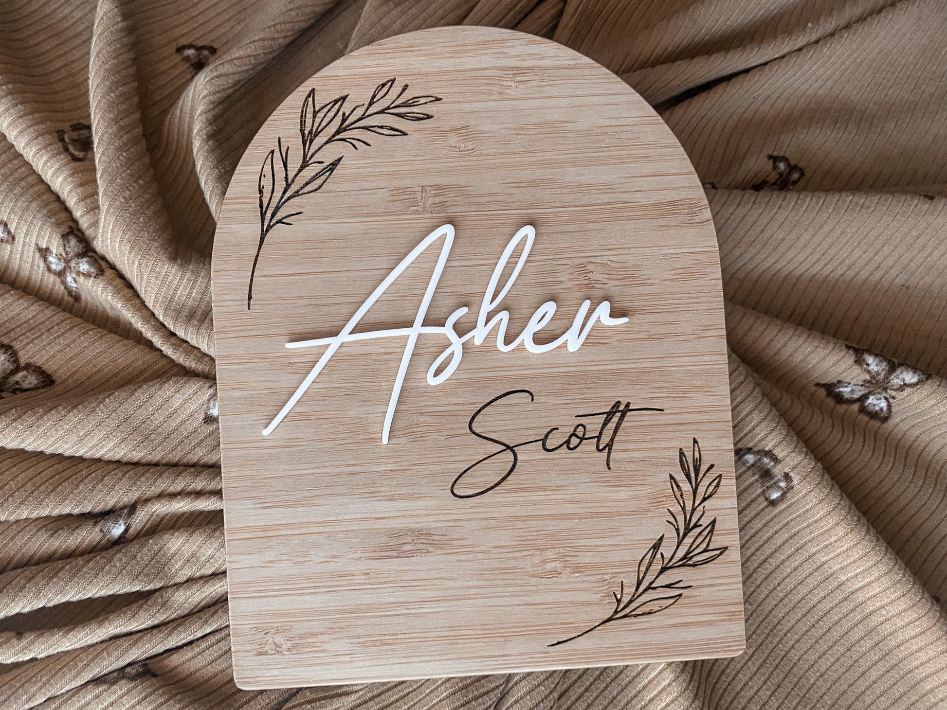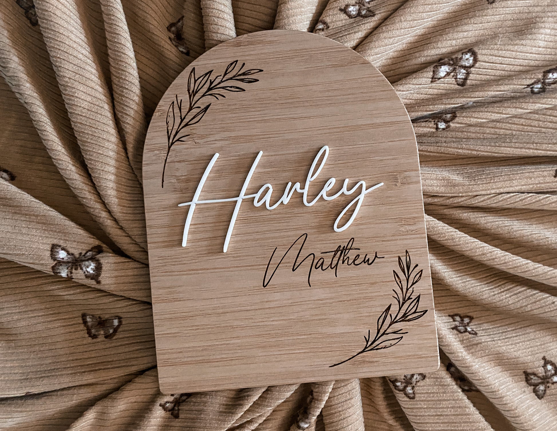 Made on bamboo at 15cms in height this is a perfect pick when you’re stuck on names/it’s a surprise! With our leaf pattern on each side you can have whatever you’d like on there!