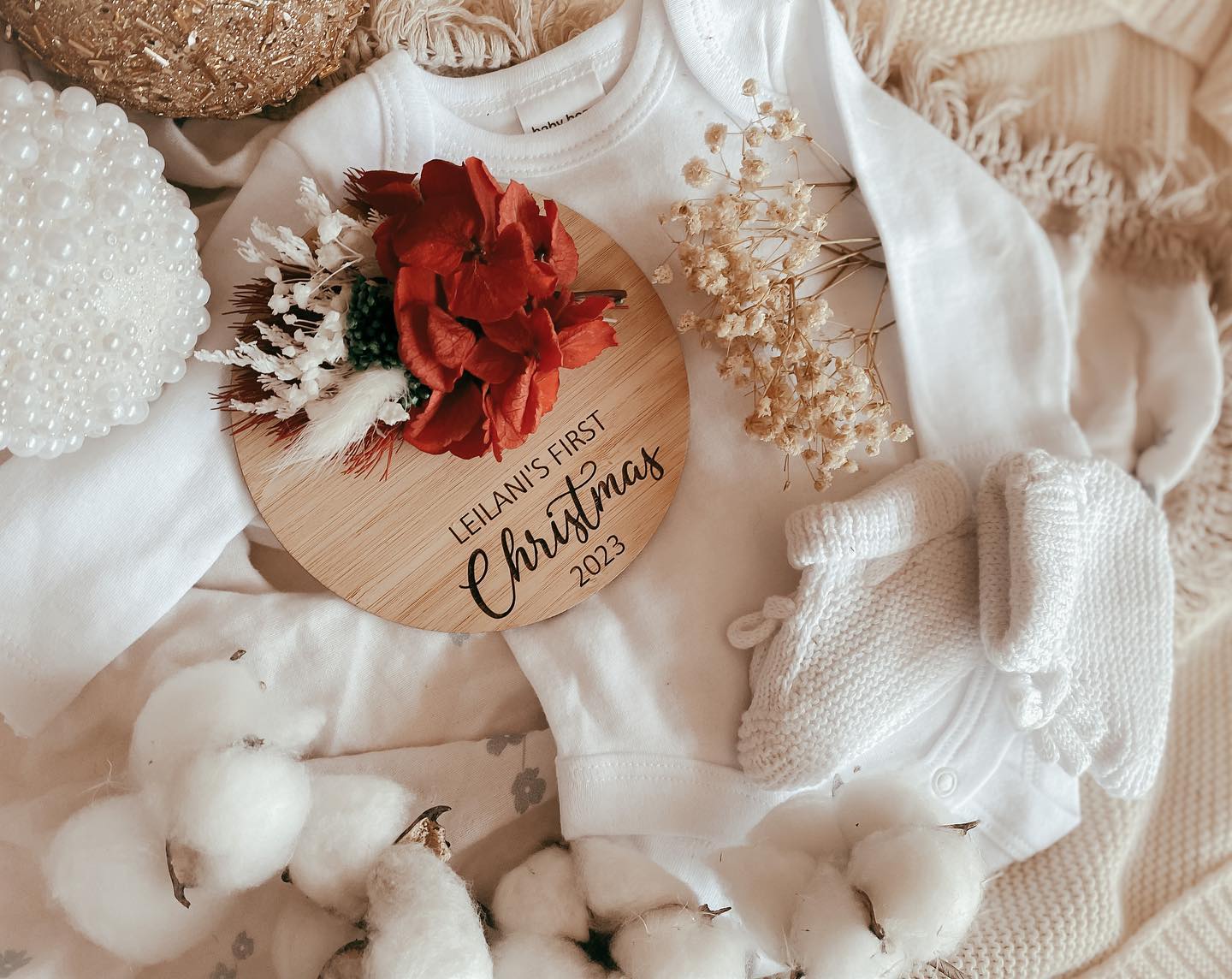 Dried floral different font first Christmas disc