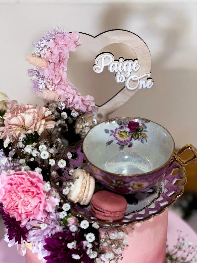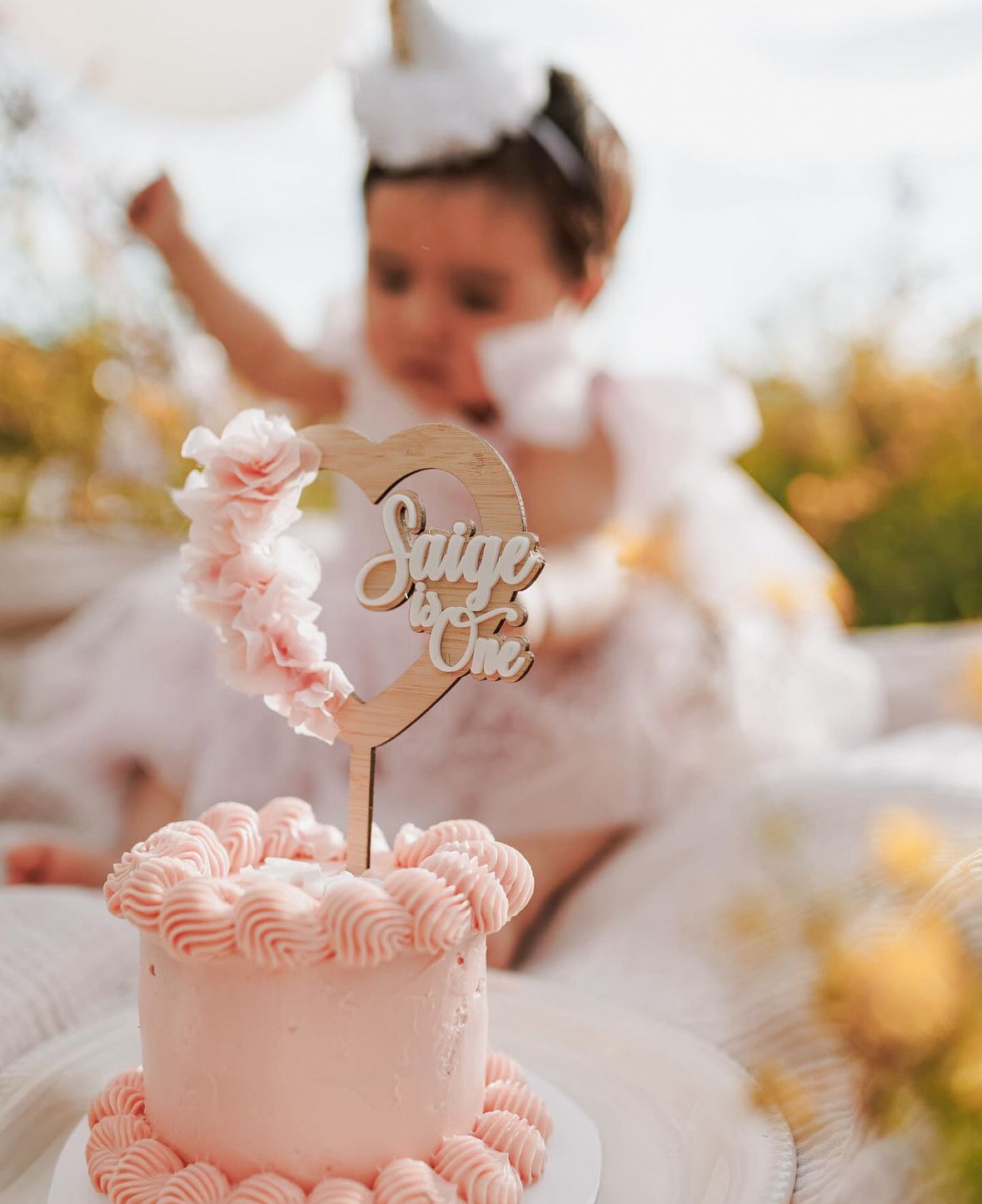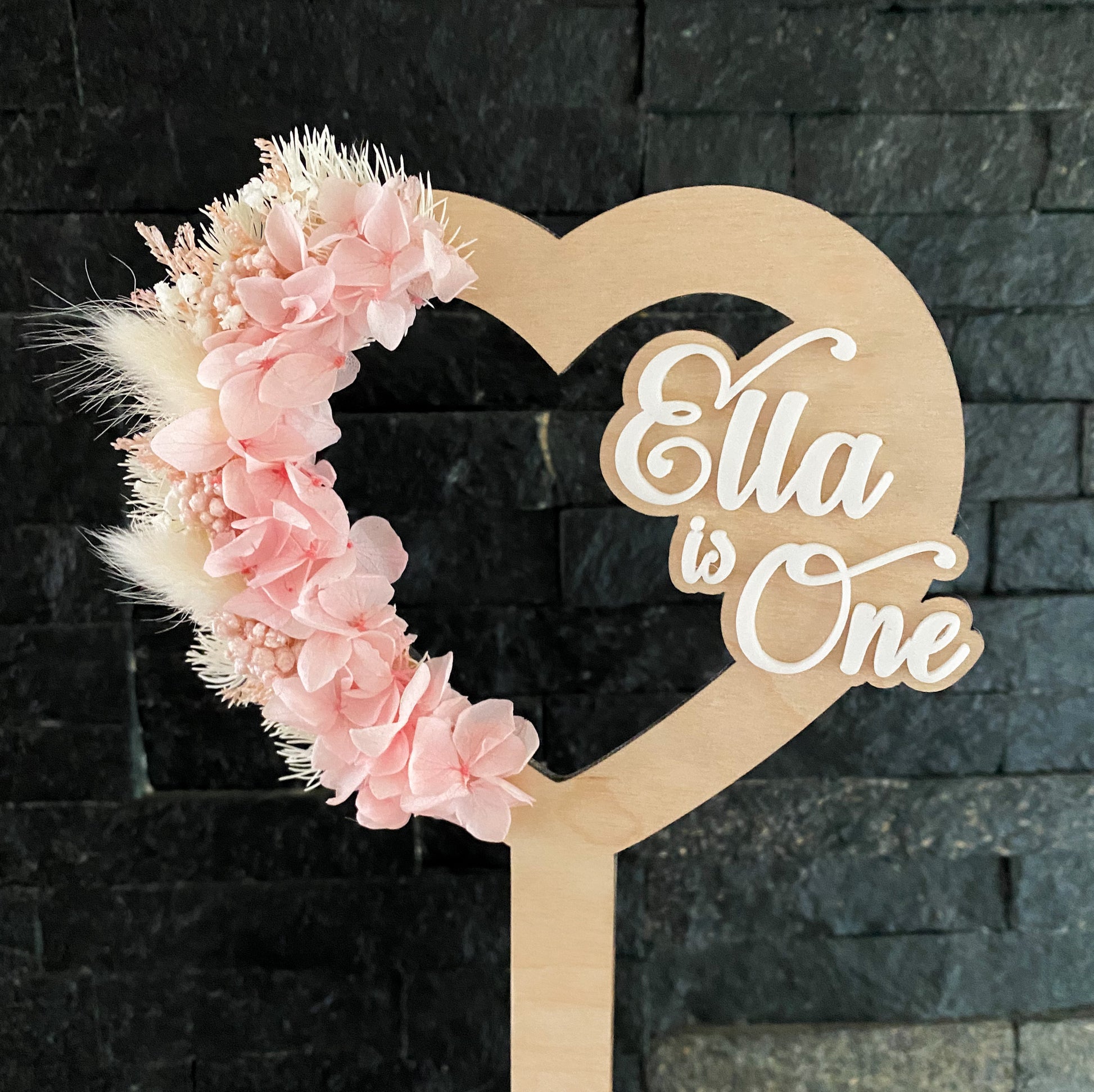 Such a pretty design suitable for any little girls cake! Made on birch wood and the heart at the widest part measures 13cm, with different colour florals to pick from we can match any theme! Doesn’t have to be for a first birthday either!