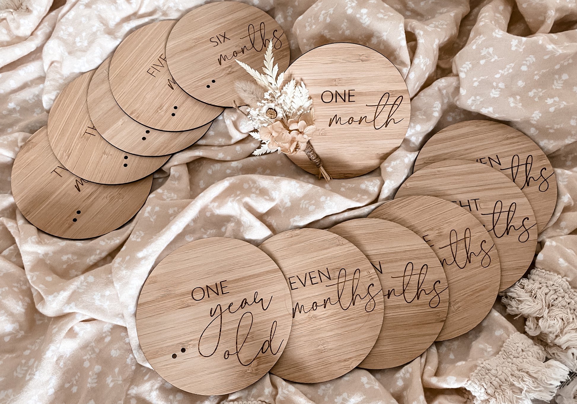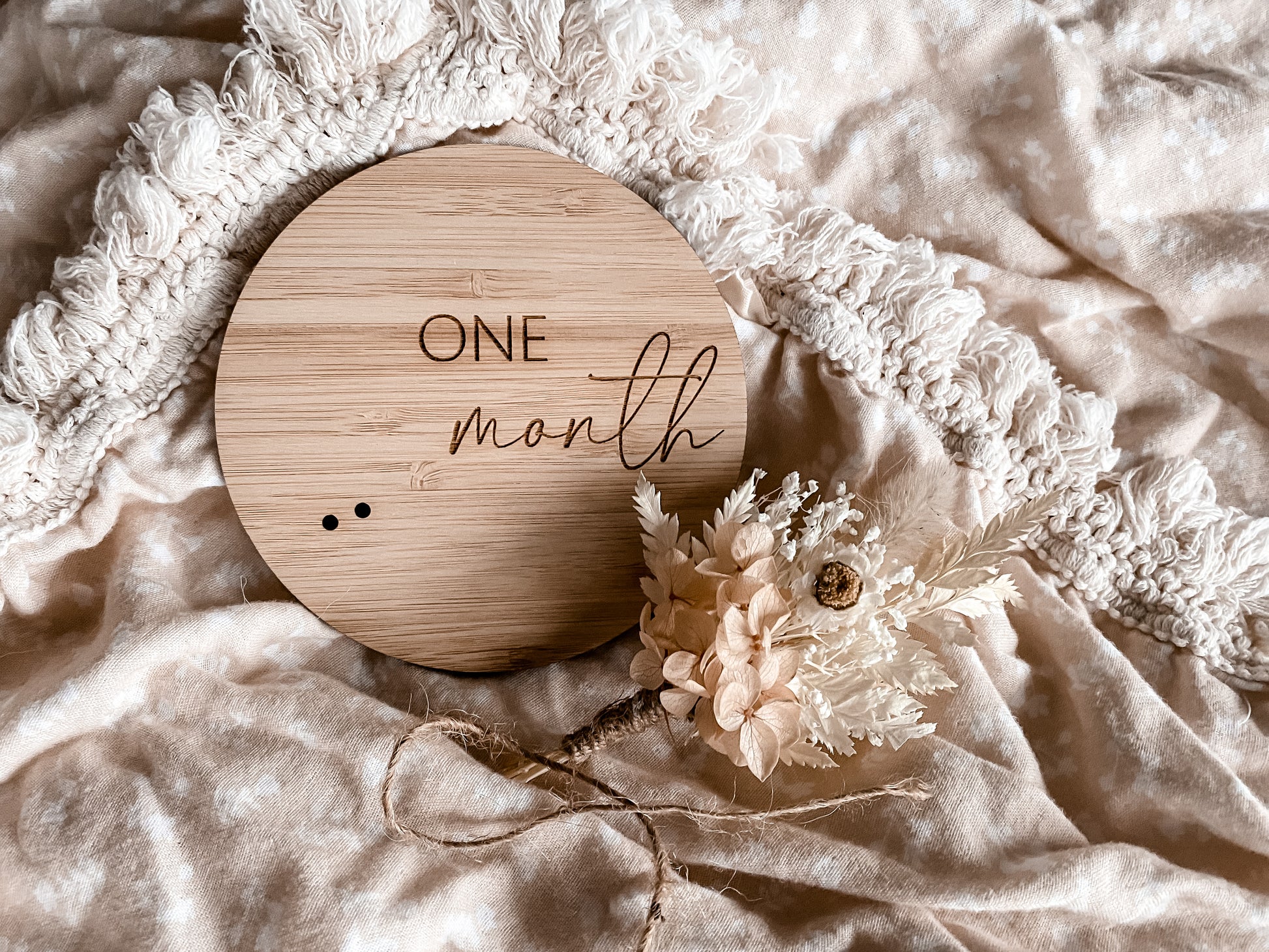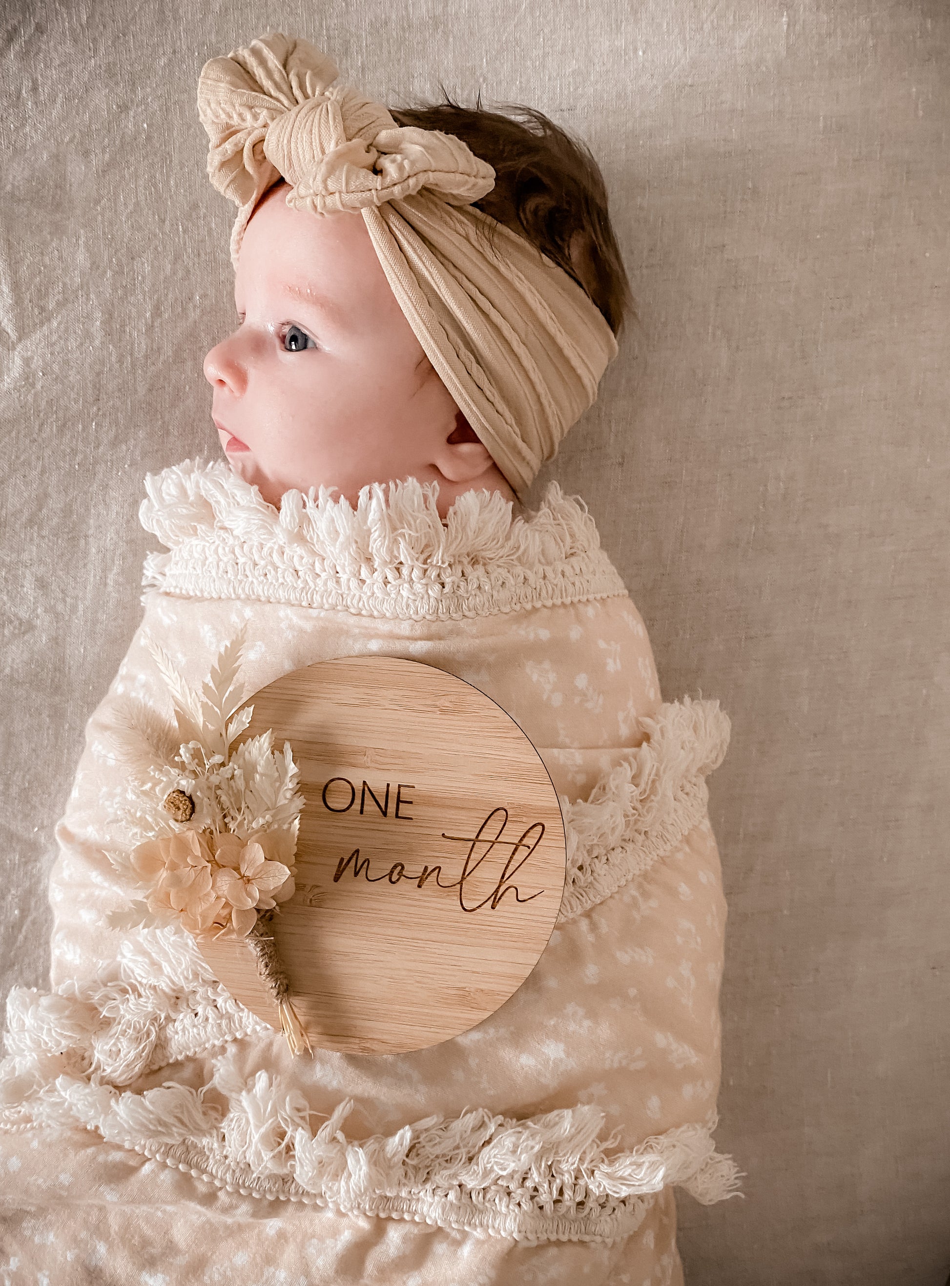 Using string provided to attach the dried floral bunch of your choice, these one month to one year old milestones are a beautiful statement piece for your monthly photos.