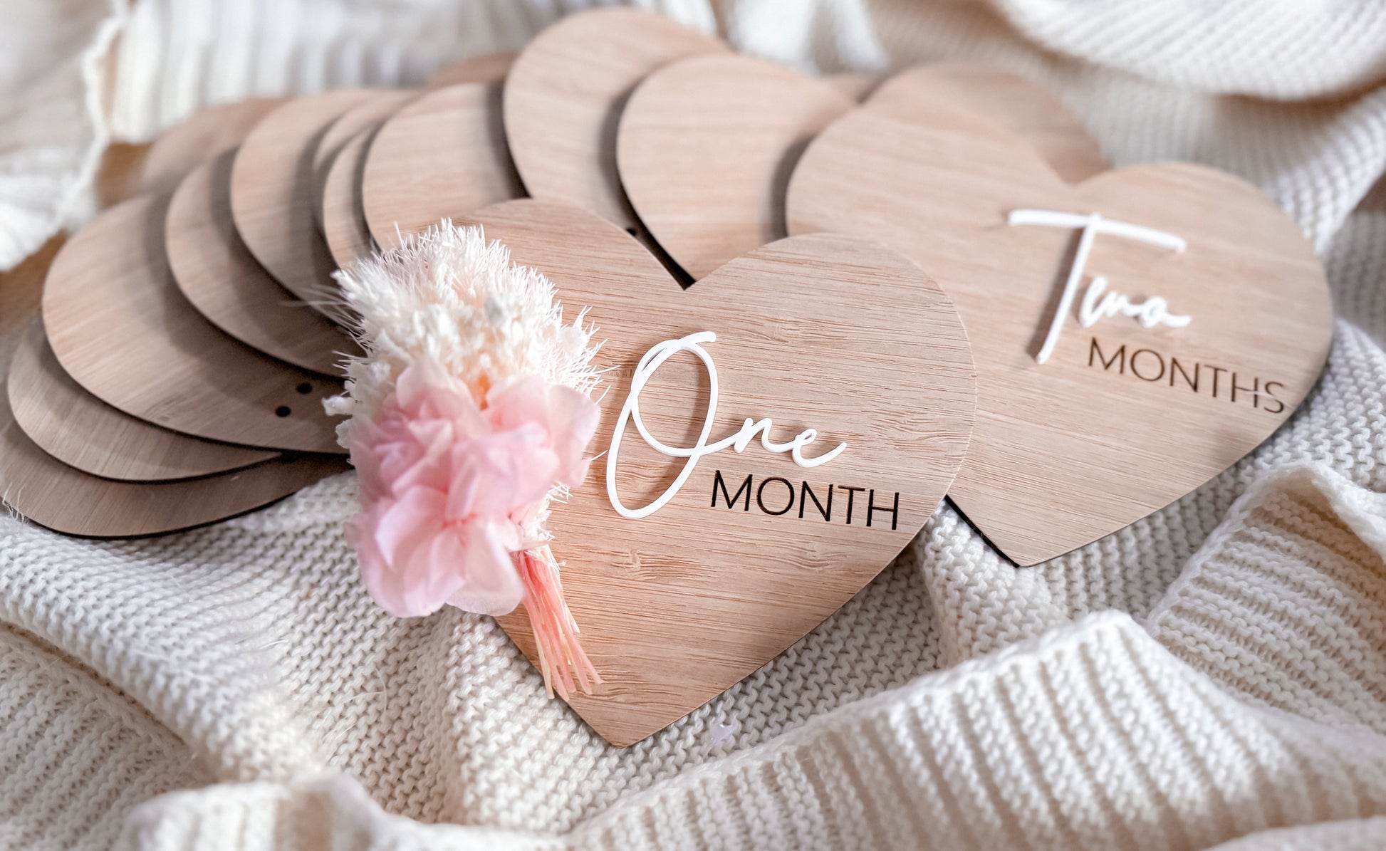 Just like our original dried flower milestones in this shape we are now offering them with acrylic wording!