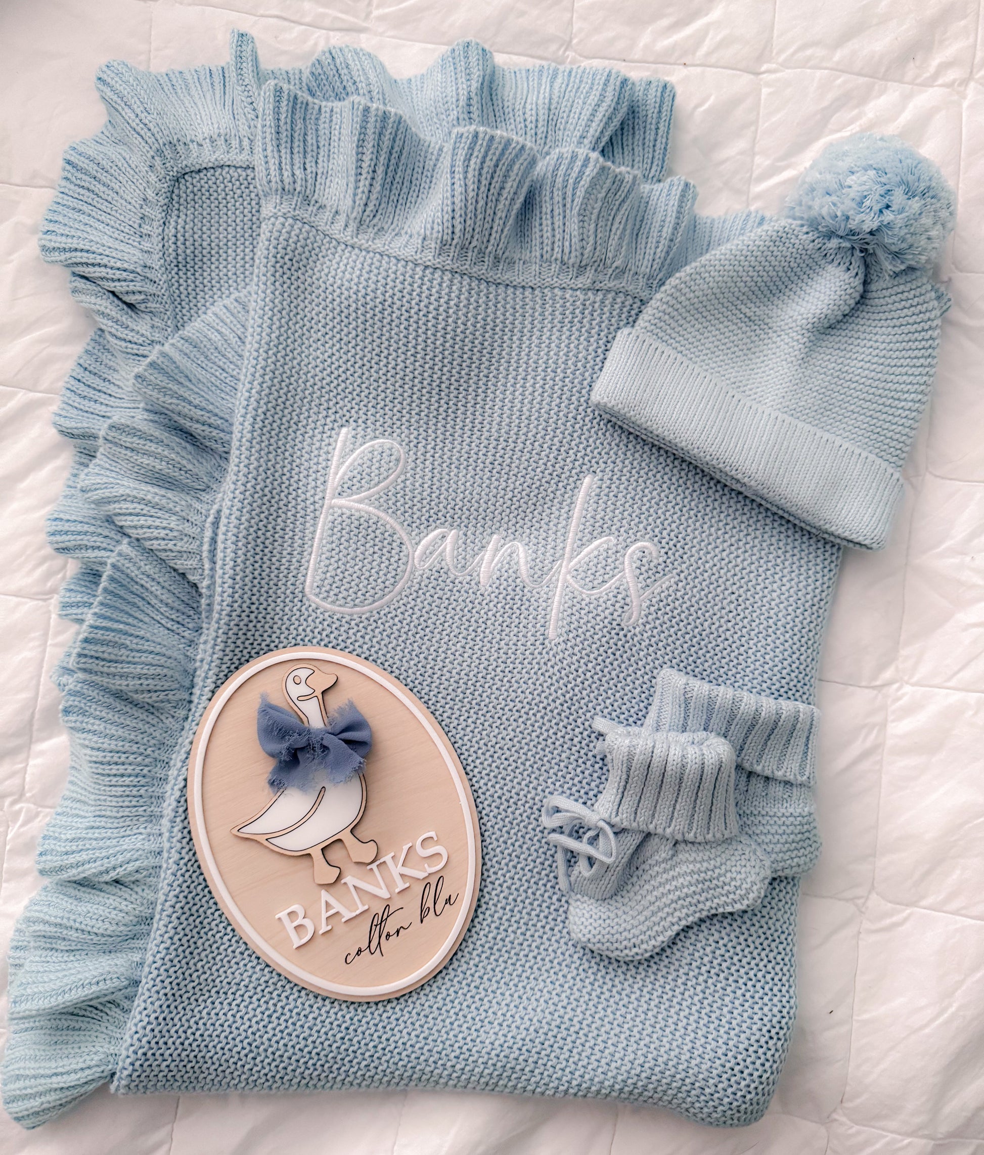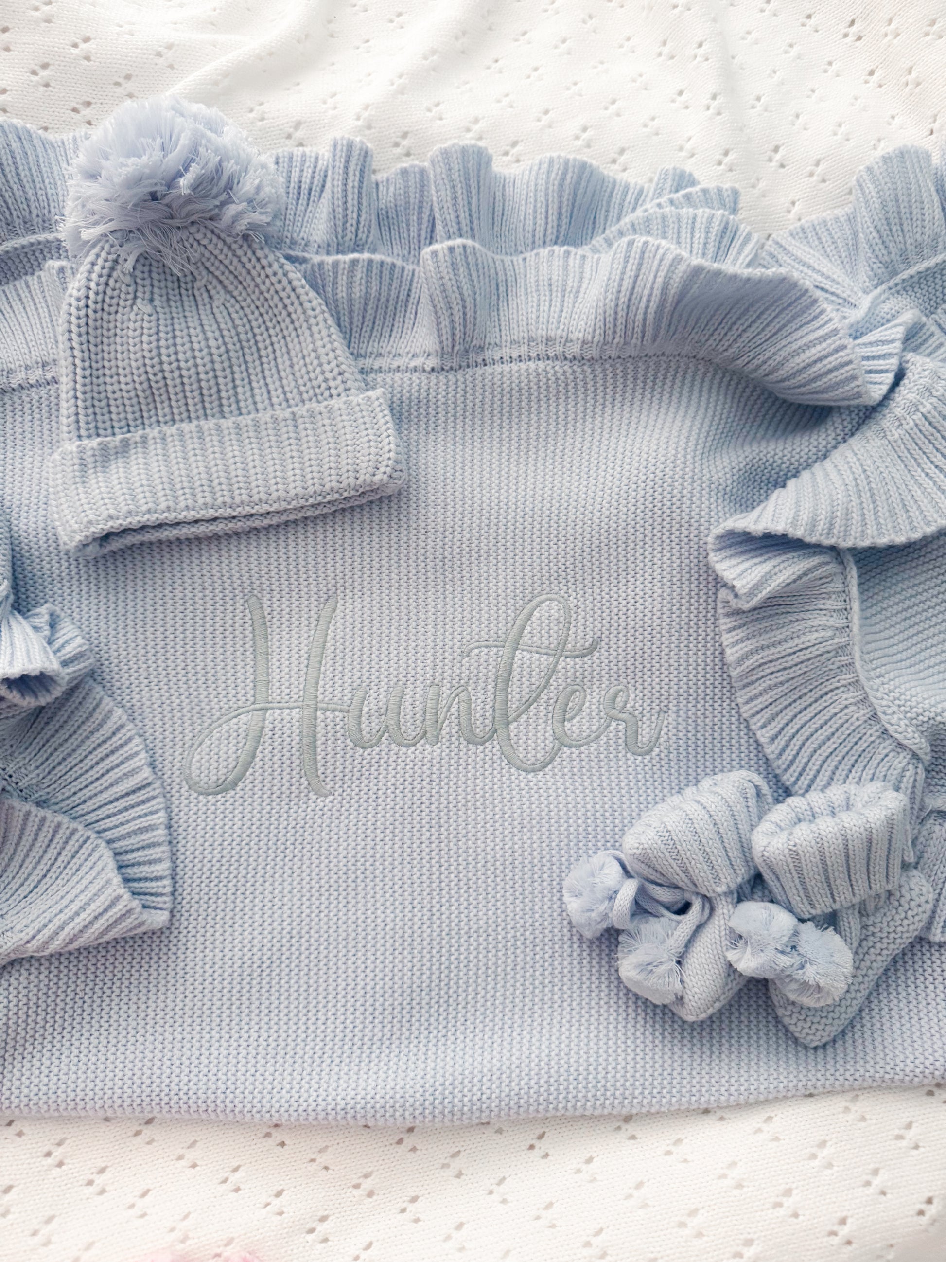 Dusty blue frill blanket