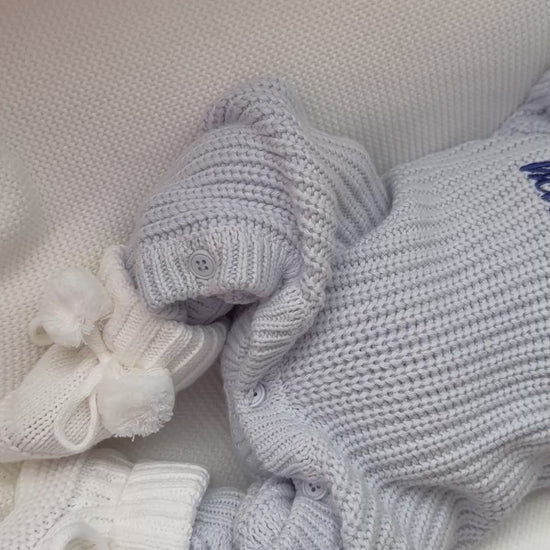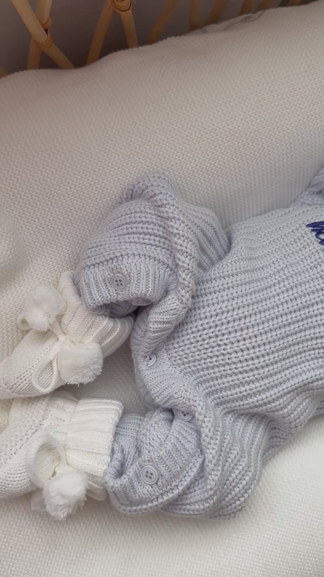 Shop our gorgeous dusty blue romper! (Yes the same colour as our dusty blue hat and booties so will match if you pair them!) made on beautiful soft cotton gentle on your newborn babies skin!