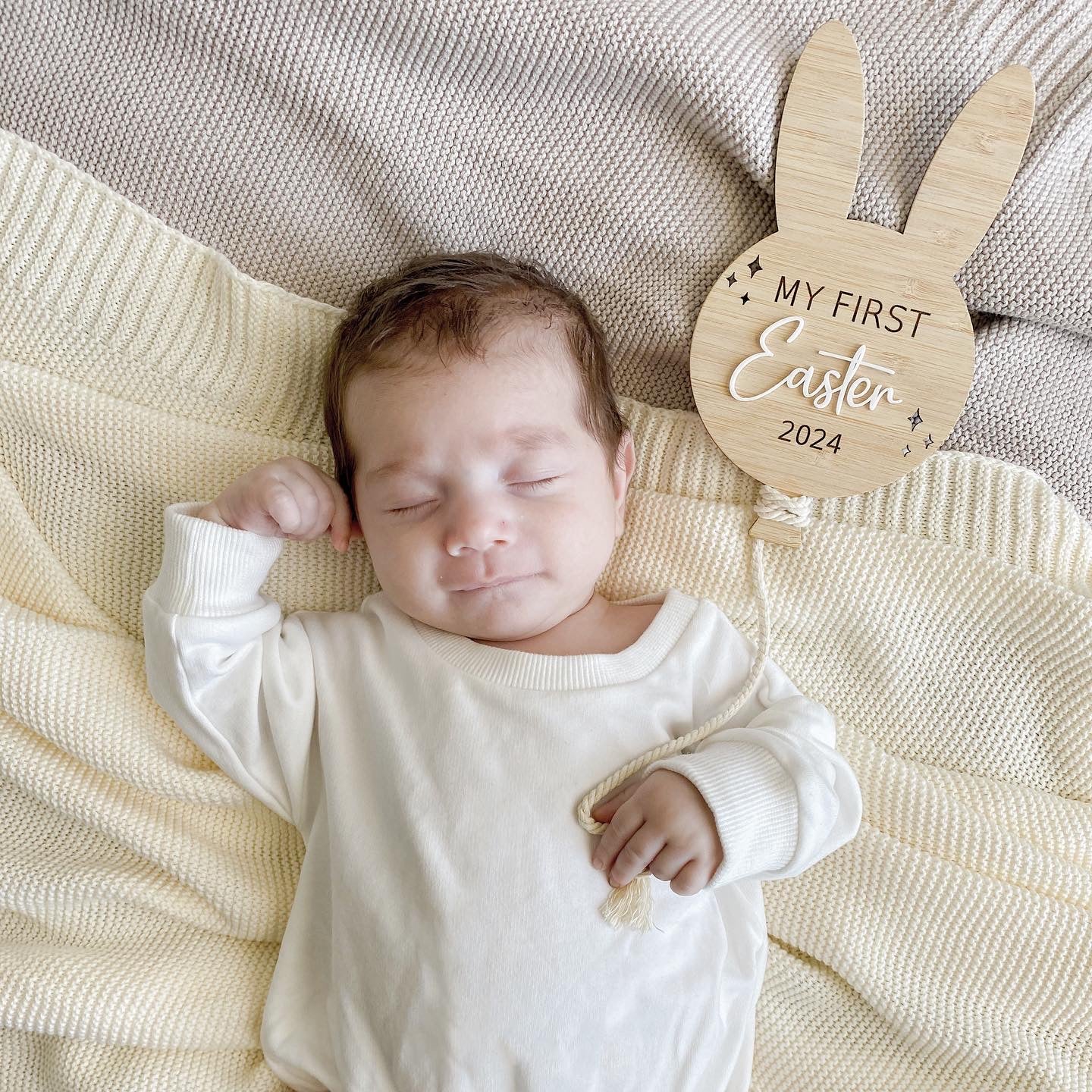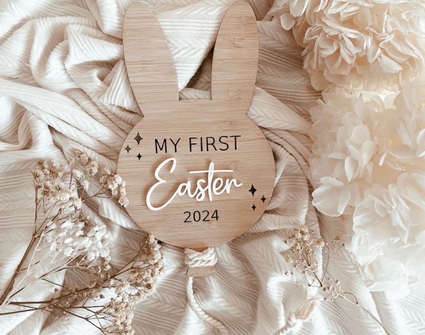 Made on bamboo just let us know how you’d like it to look at we will make it to help you celebrate that first Easter milestone!
