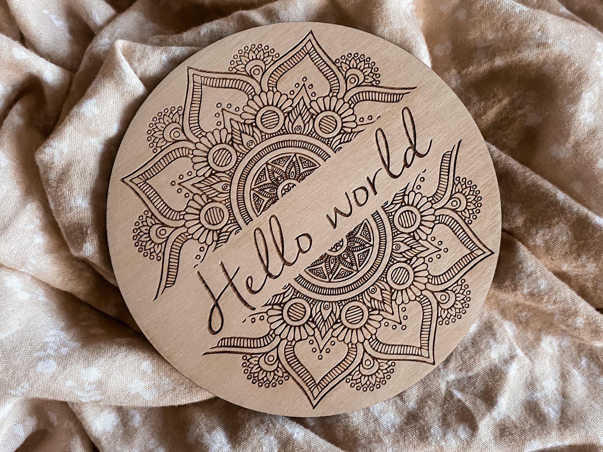 Made on birch wood, this 14cm hello world disc with all of those fine details is so stunning.