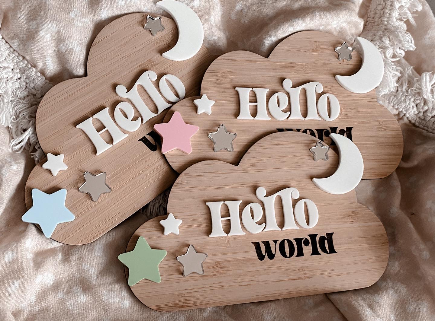 Welcoming our newest pieces to our collection! Please make sure you select the colours you’d like one has a blue star, one has a sage and one has a pink star! The cloud measures roughly 16cm wide and made on bamboo, if you’d like this item personalised please leave me a note at the checkout with the name and I can do that for you!