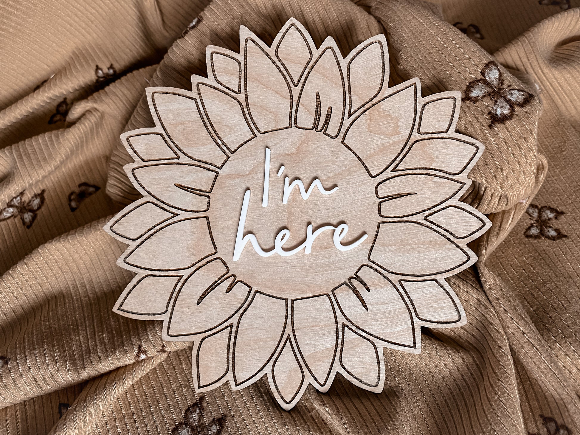 Made on birch wood and 15cm this sweet little sunflower is a lovely announcement prop for your little ones arrival photo!
