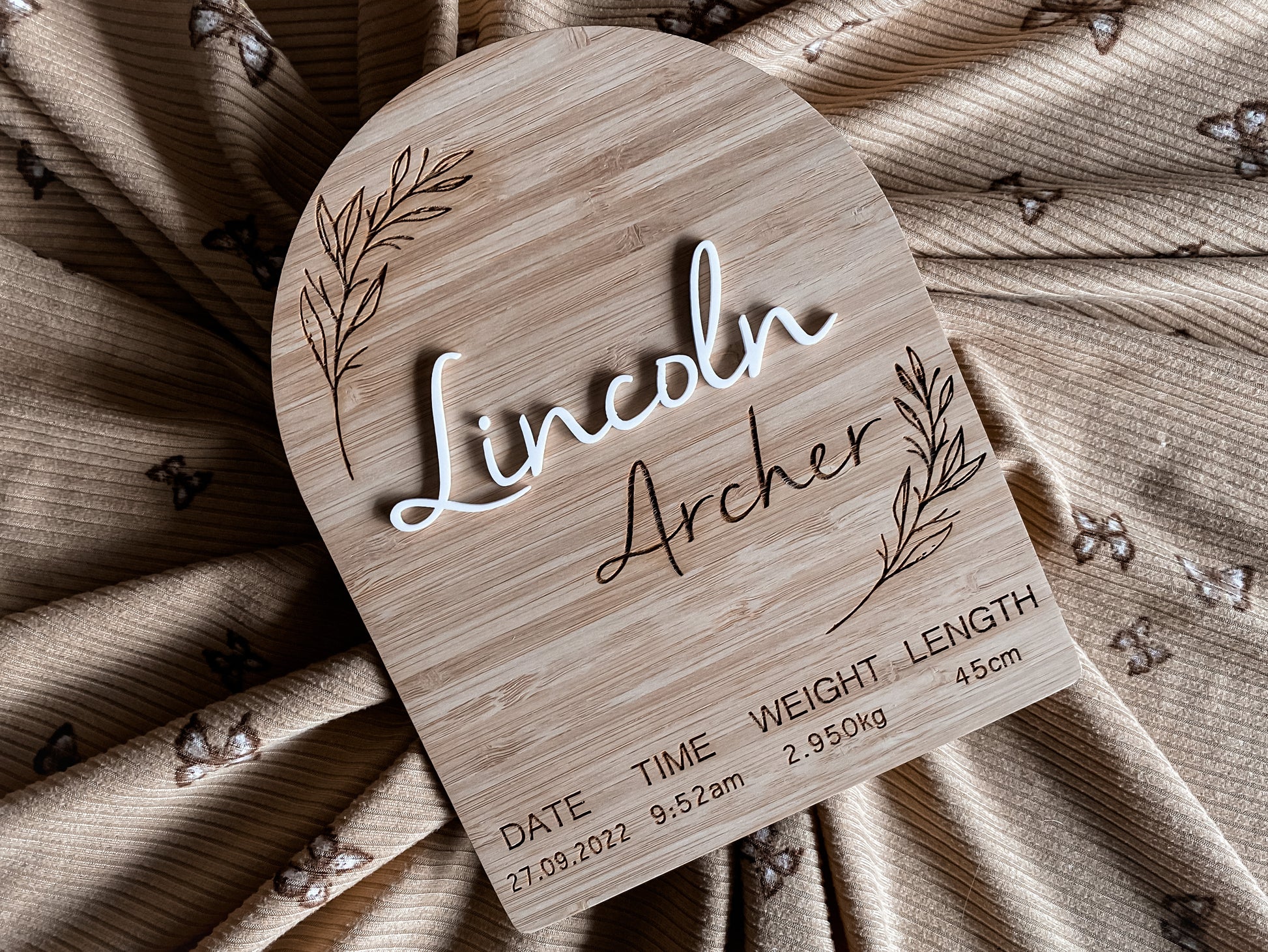 Announce the arrival of your little one, or have on display in their room using this gorgeous arch shaped plaque!