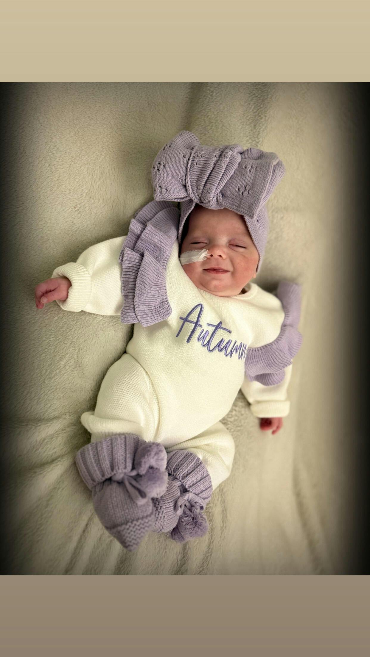 Made from beautiful soft cotton this sweet and also slightly stretchy baby bow is a gorgeous accessory! Made in a sweet pointelle pattern the lilac matches our pompom booties and white and lilac frill romper