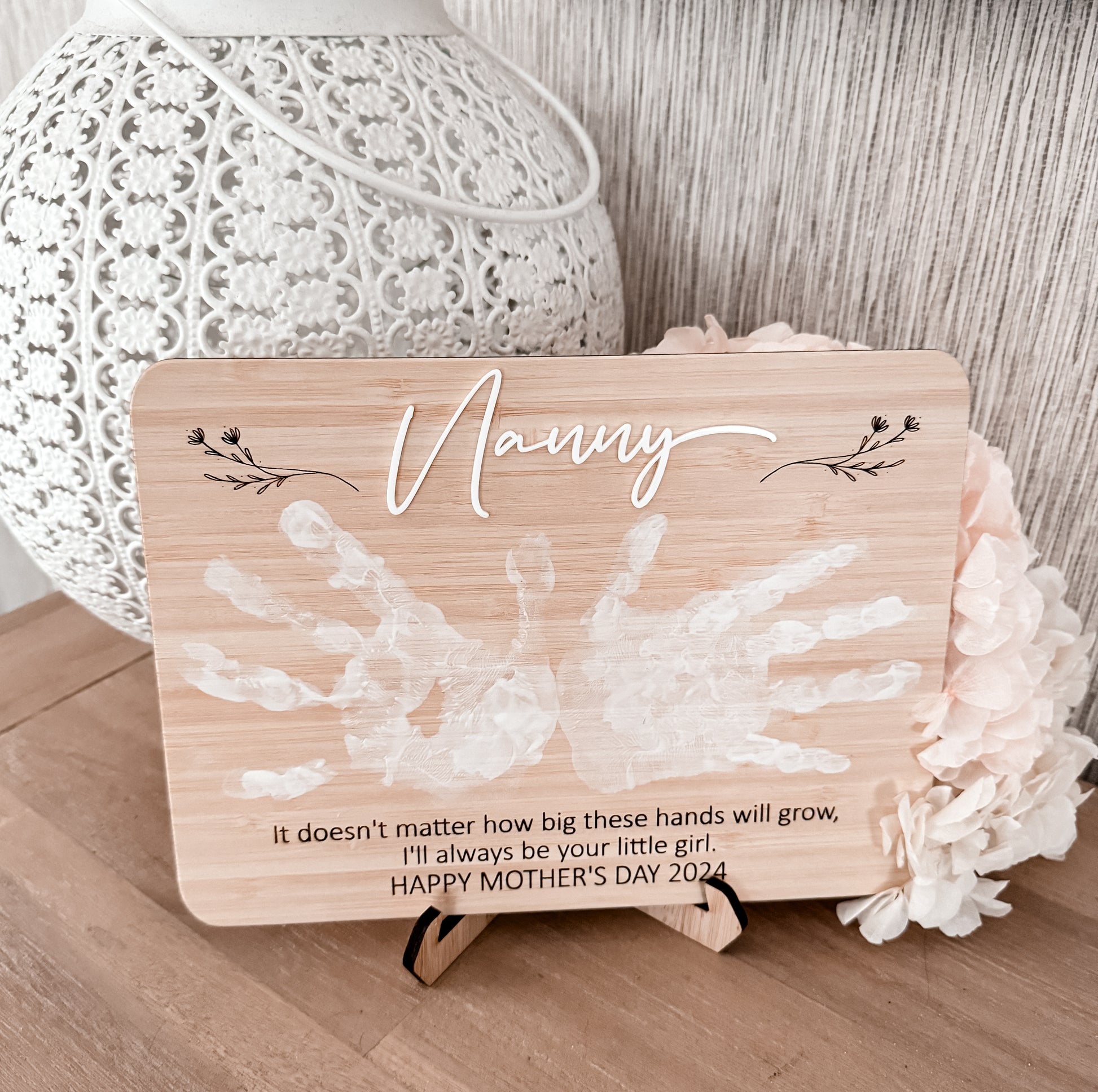 Made on the finest bamboo this handprint piece is perfect for gifting to a special grandparent or aunty or to have as a keepsake for yourself! You can add a little saying or just put a name and the year on it’s up to you!