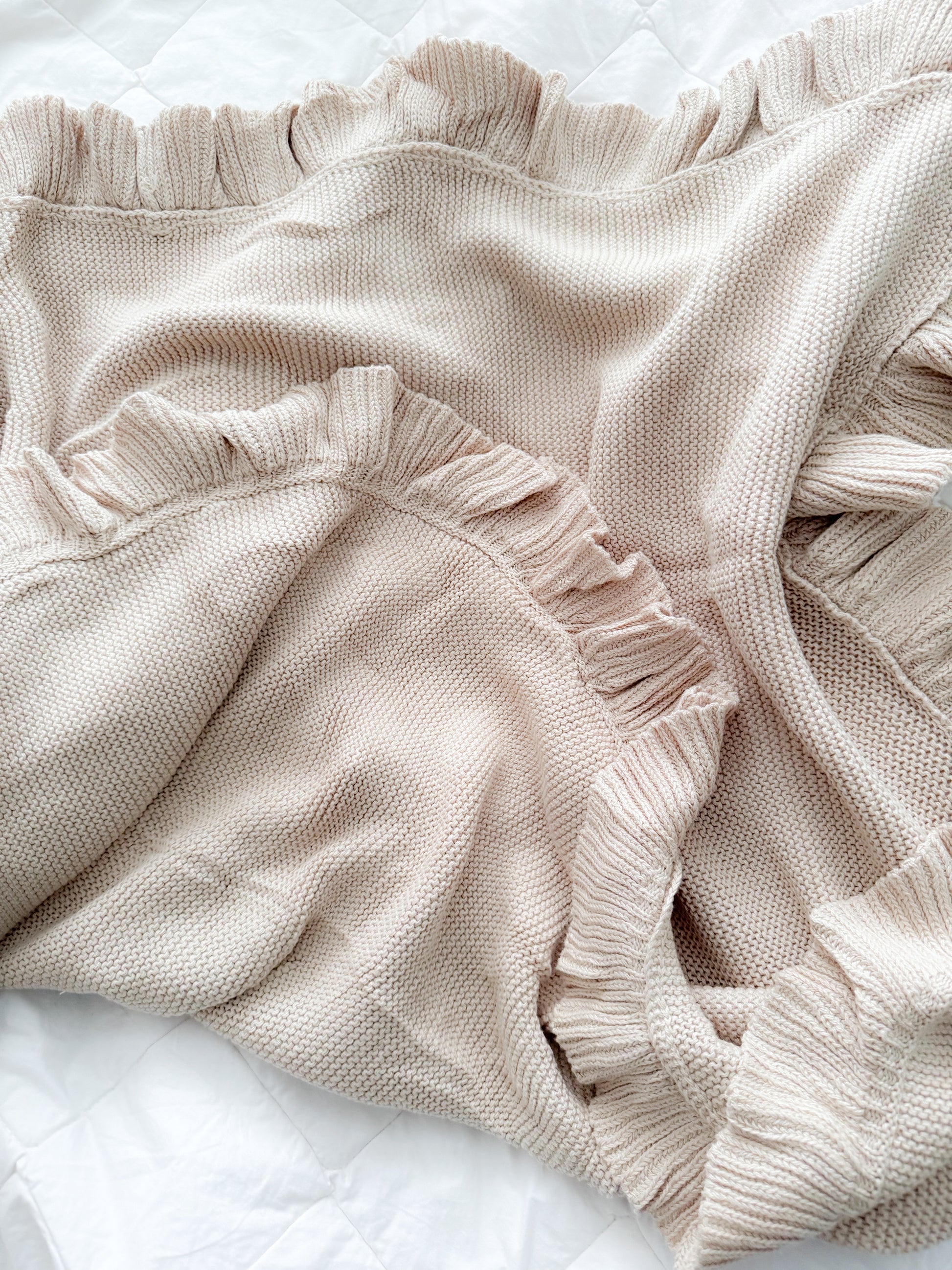 Made on cotton so nice and soft for babies skin and not to thick to use all year round! A gorgeous tone of oatmeal. With frill around the edge for the extra touch!