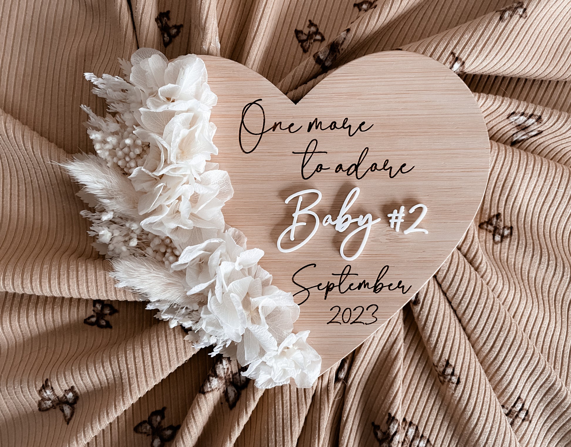 Our popular one more to adore piece now comes in our heart shape and it’s a perfect match! Just let us know the baby number, month and year and we will create your special keepsake for you!