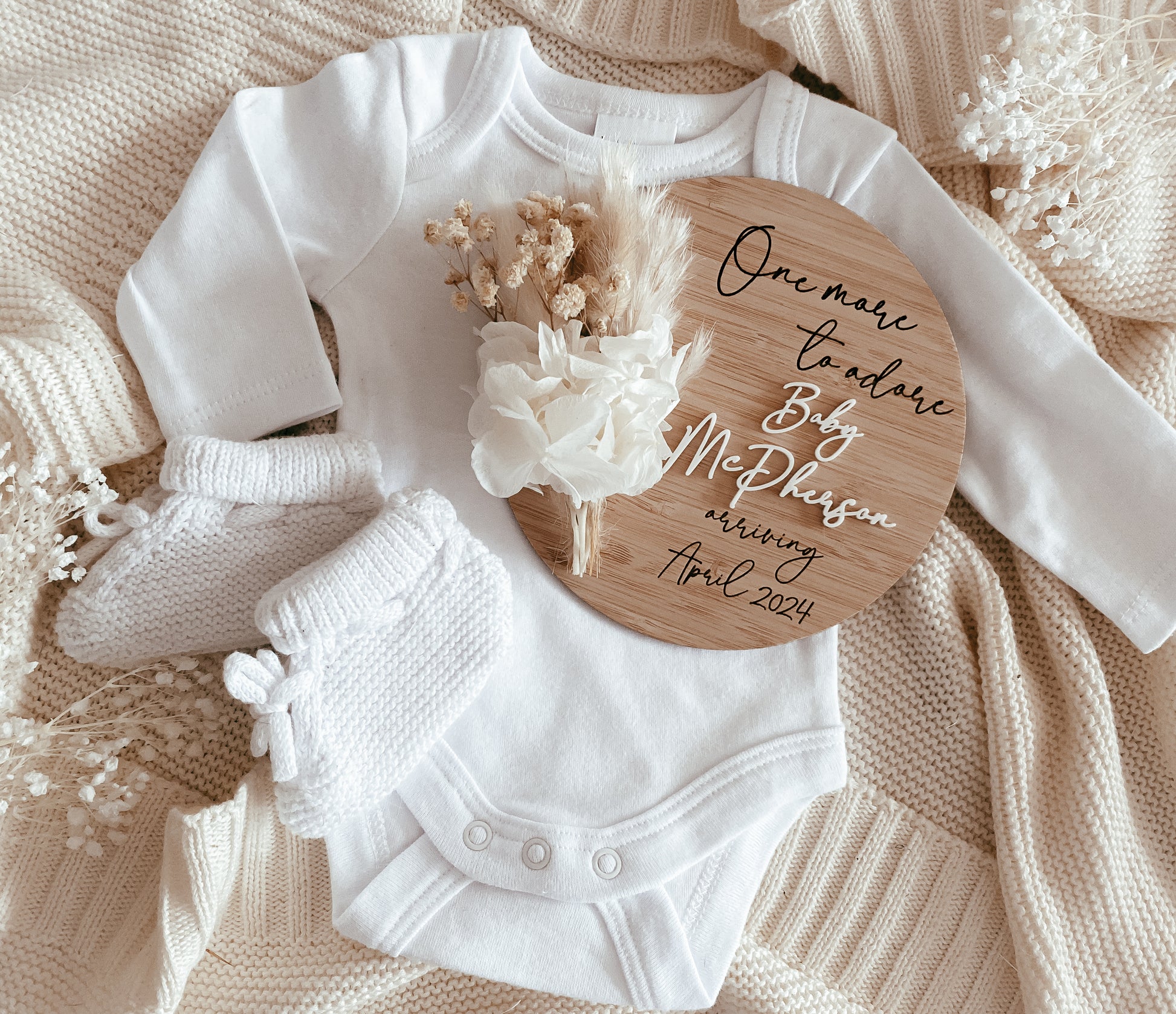Just like our one more to adore announcement, but instead of having the baby number you can have your surname/child’s name!