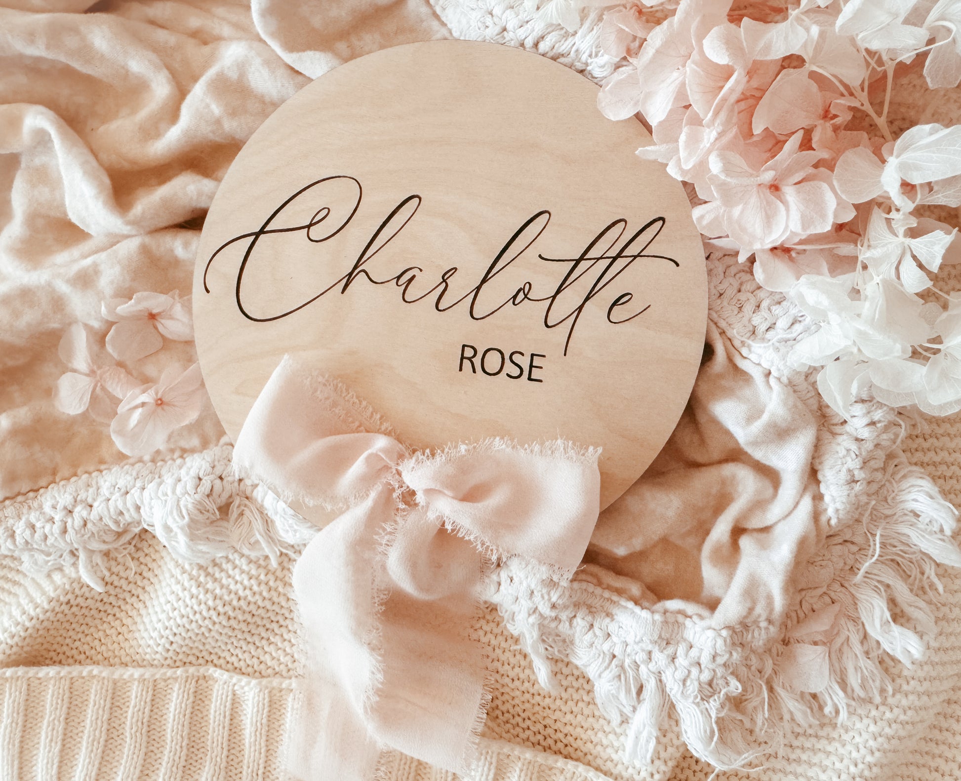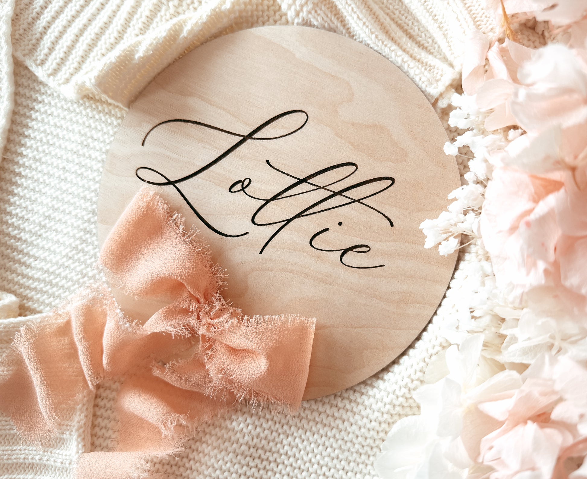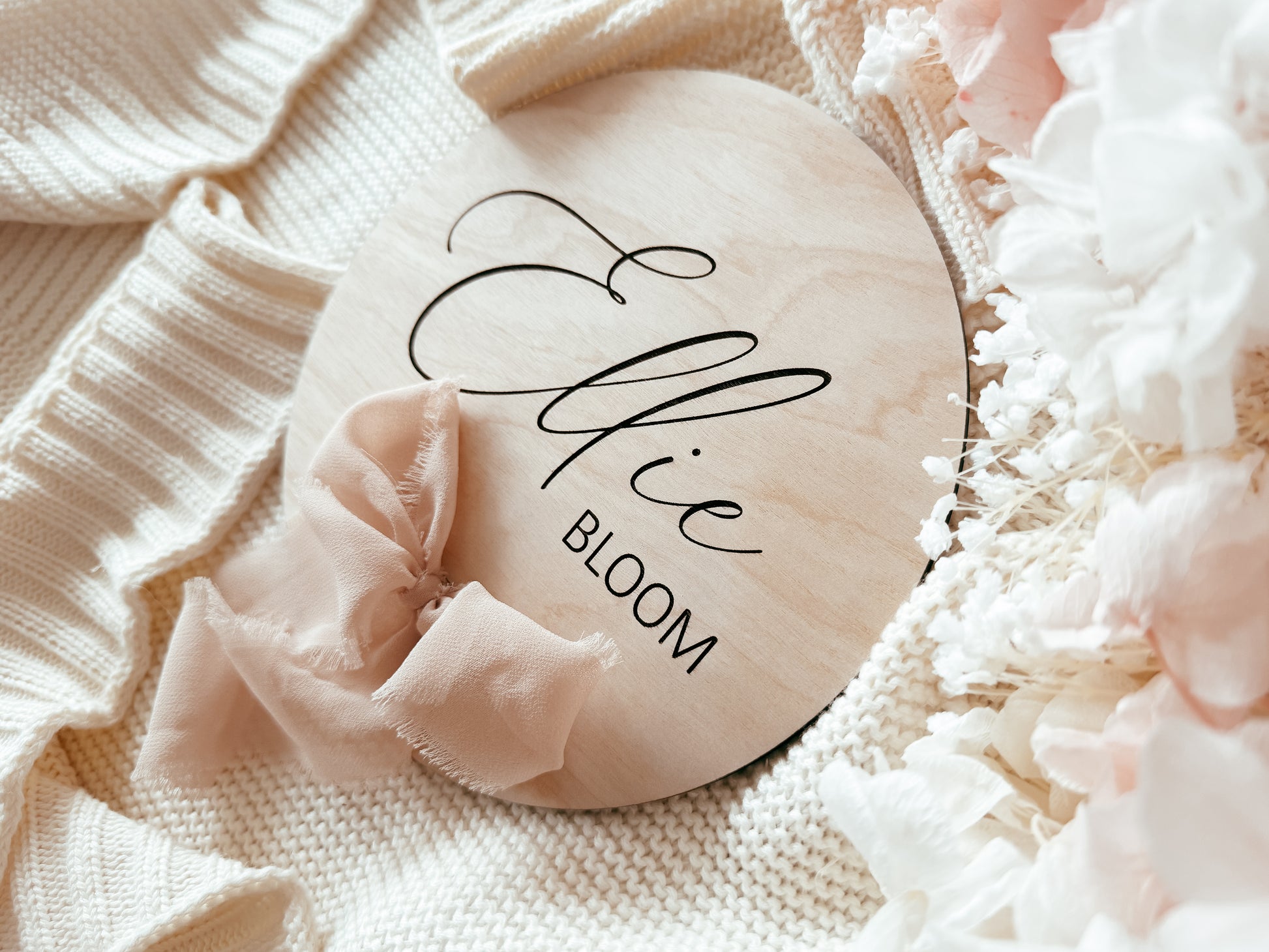 The sweetest announcement sign! Made on birch wood and engraved writing and a beautiful ribbon attached for that extra touch this will make the perfect announcement sign to add to your birth announcement photo!