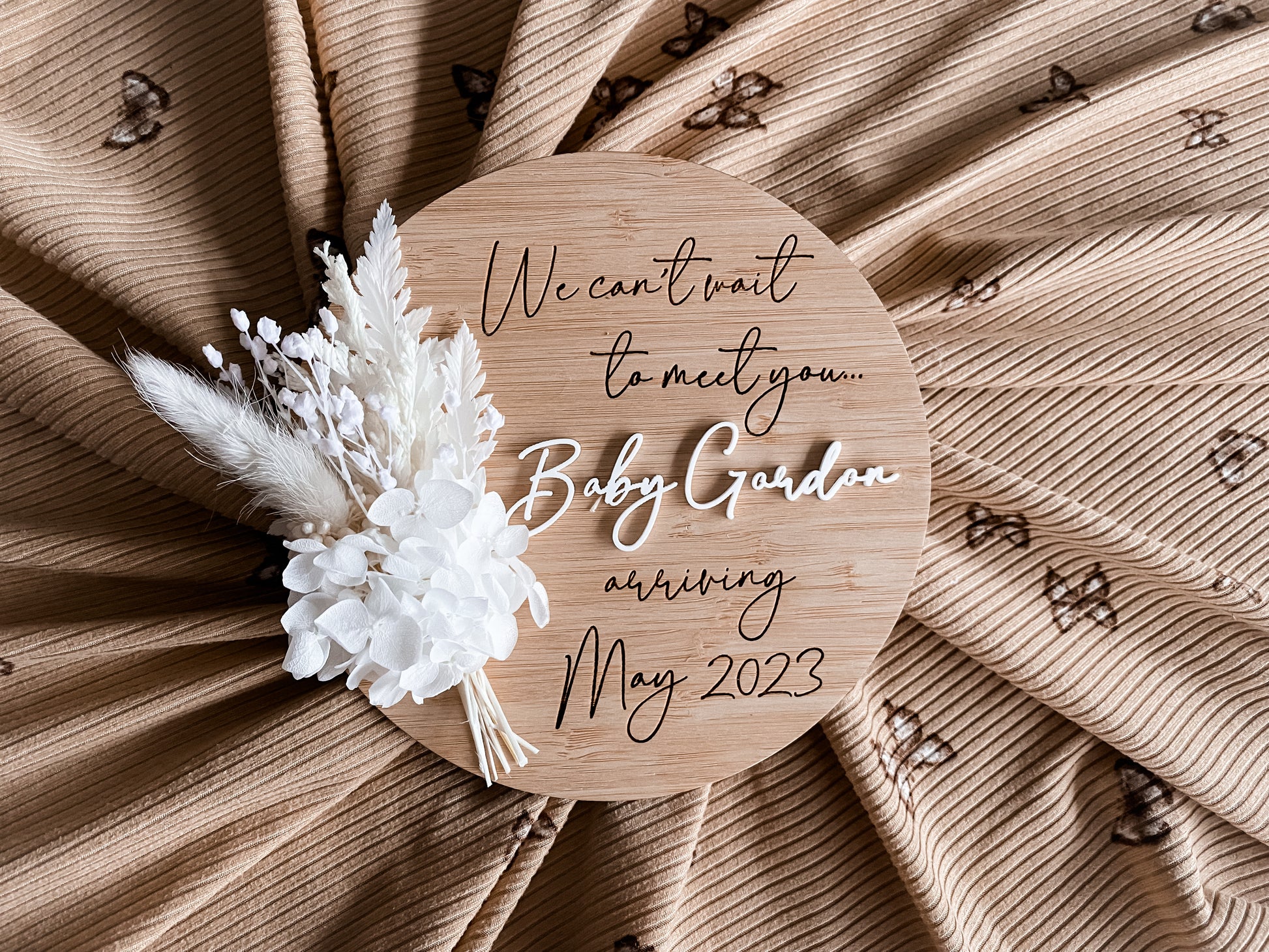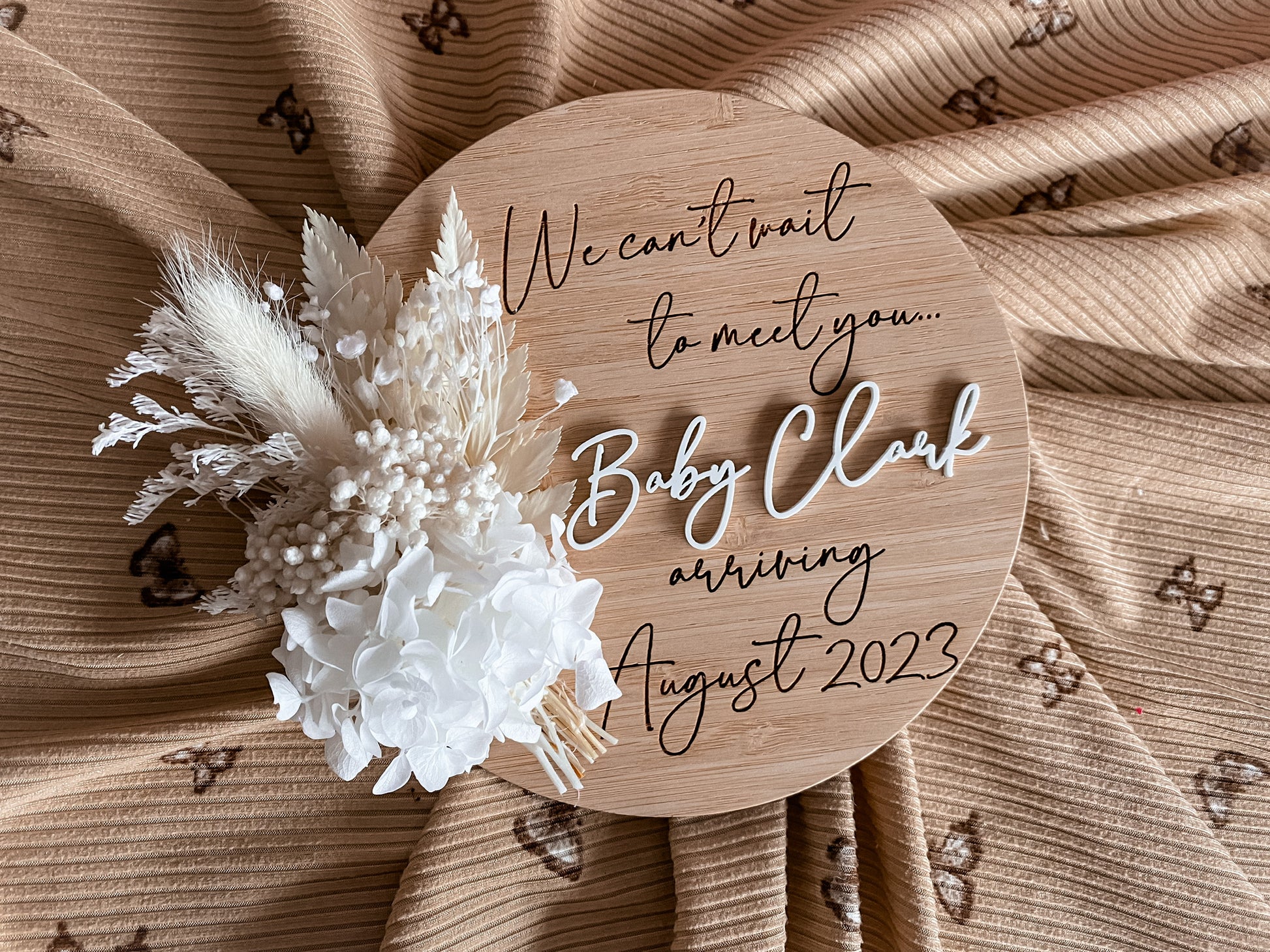 Made on bamboo at 15cm, just tell us the surname you’d like on there (or any name!) and what floral colours you’d like and we would love to create this keepsake for you! - floral colours can be anything in our range pictured here is our white bunch!