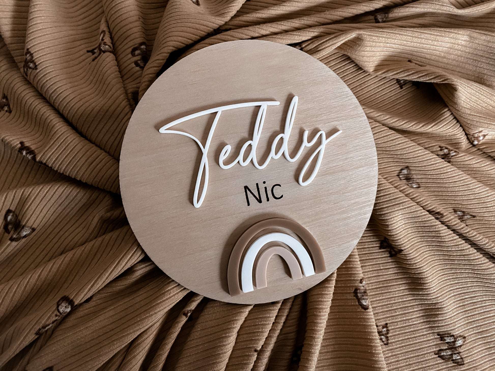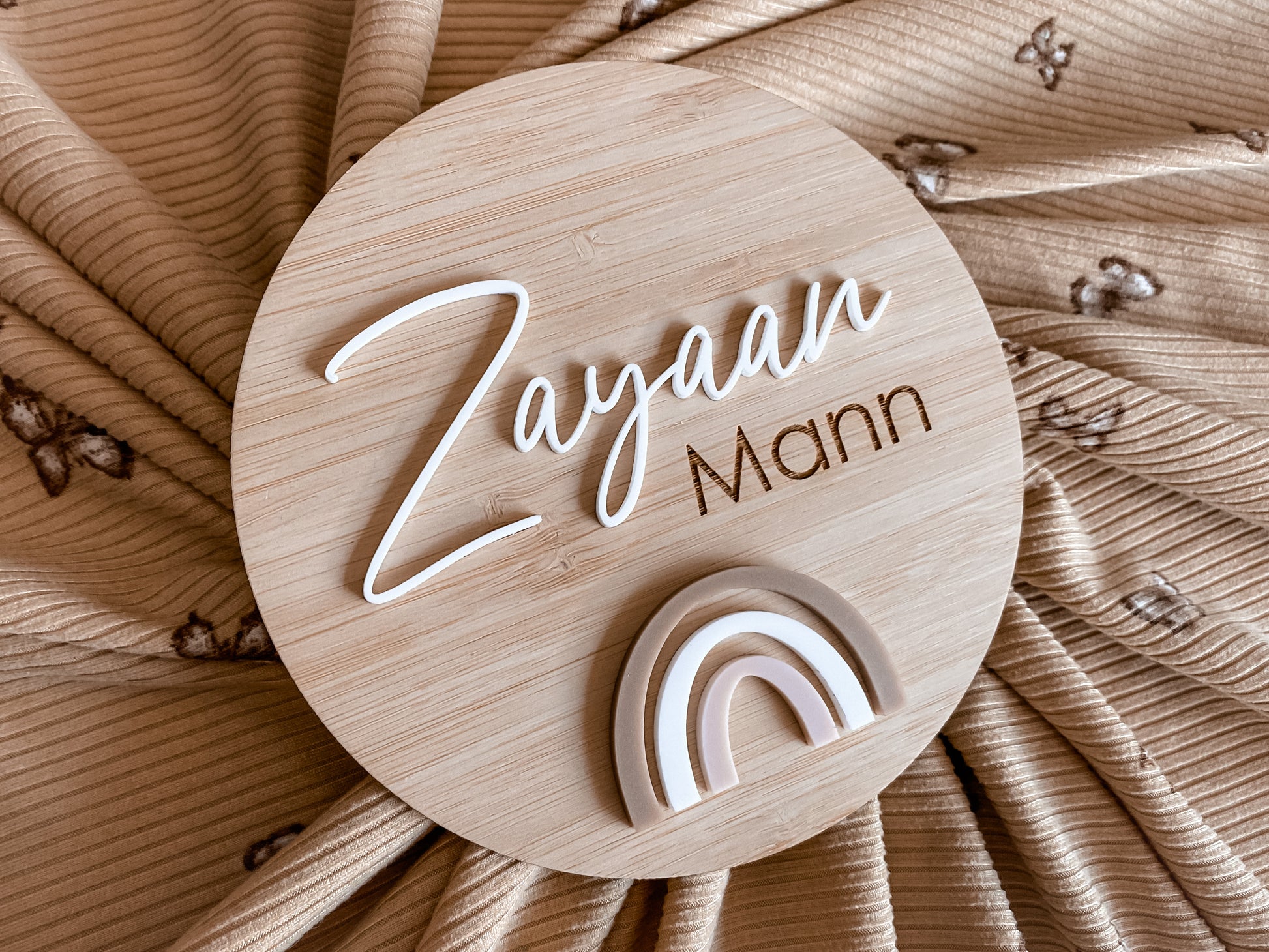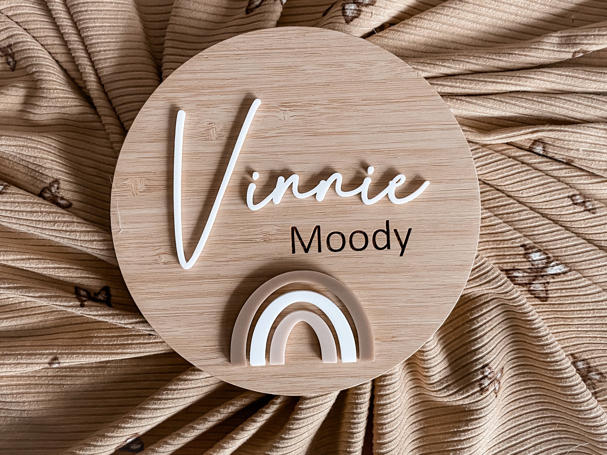 Personalised neutral rainbow announcement disc DIFFERENT fonts