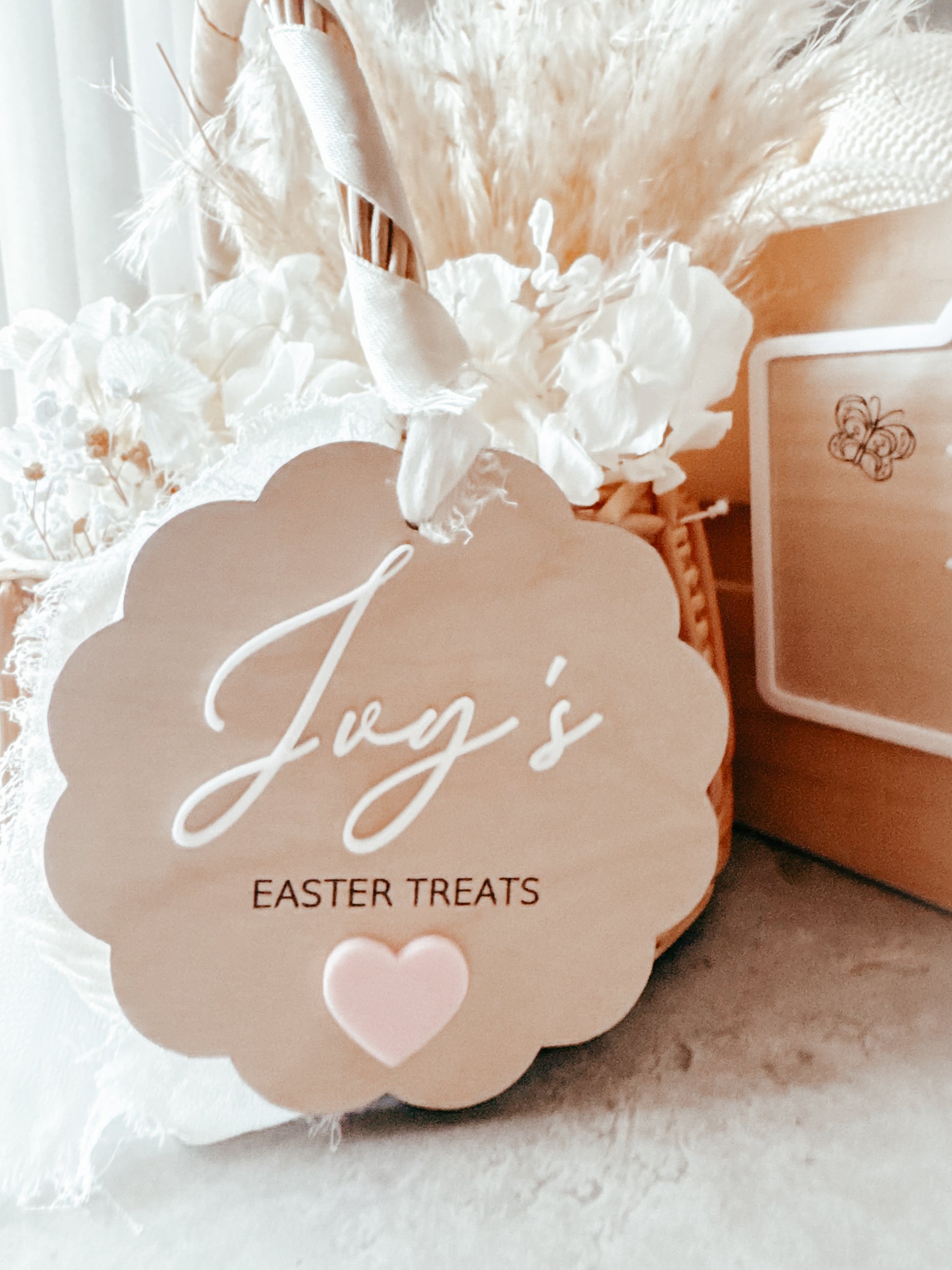 made on birch wood with a mixture of acrylic and engraved wording, paired with a sweet acrylic heart of your colour choice!