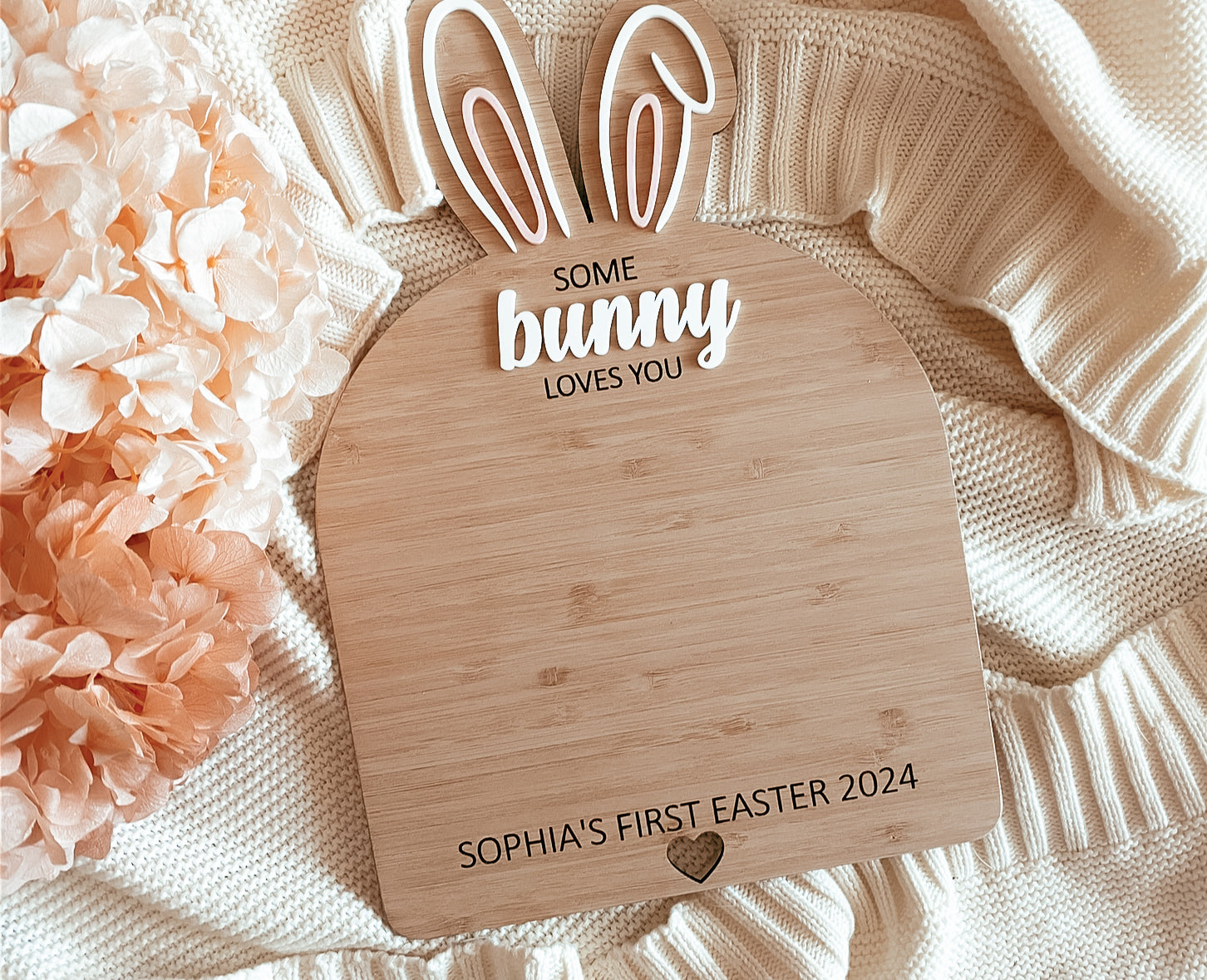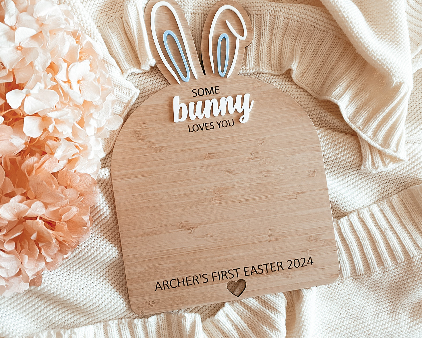 You can also have a note/name/saying down the bottom of the plaque just above the cut our heart! Chose between pink, blue or neutral ear inserts also!