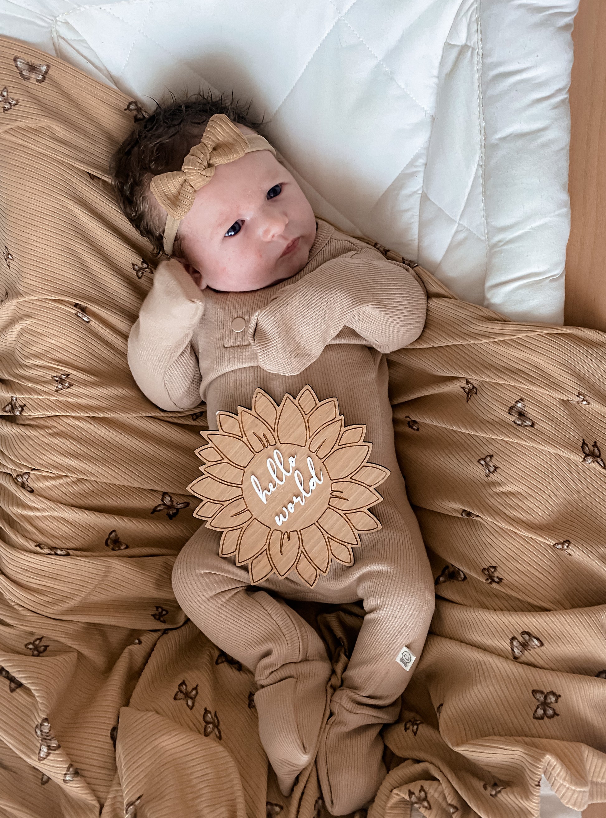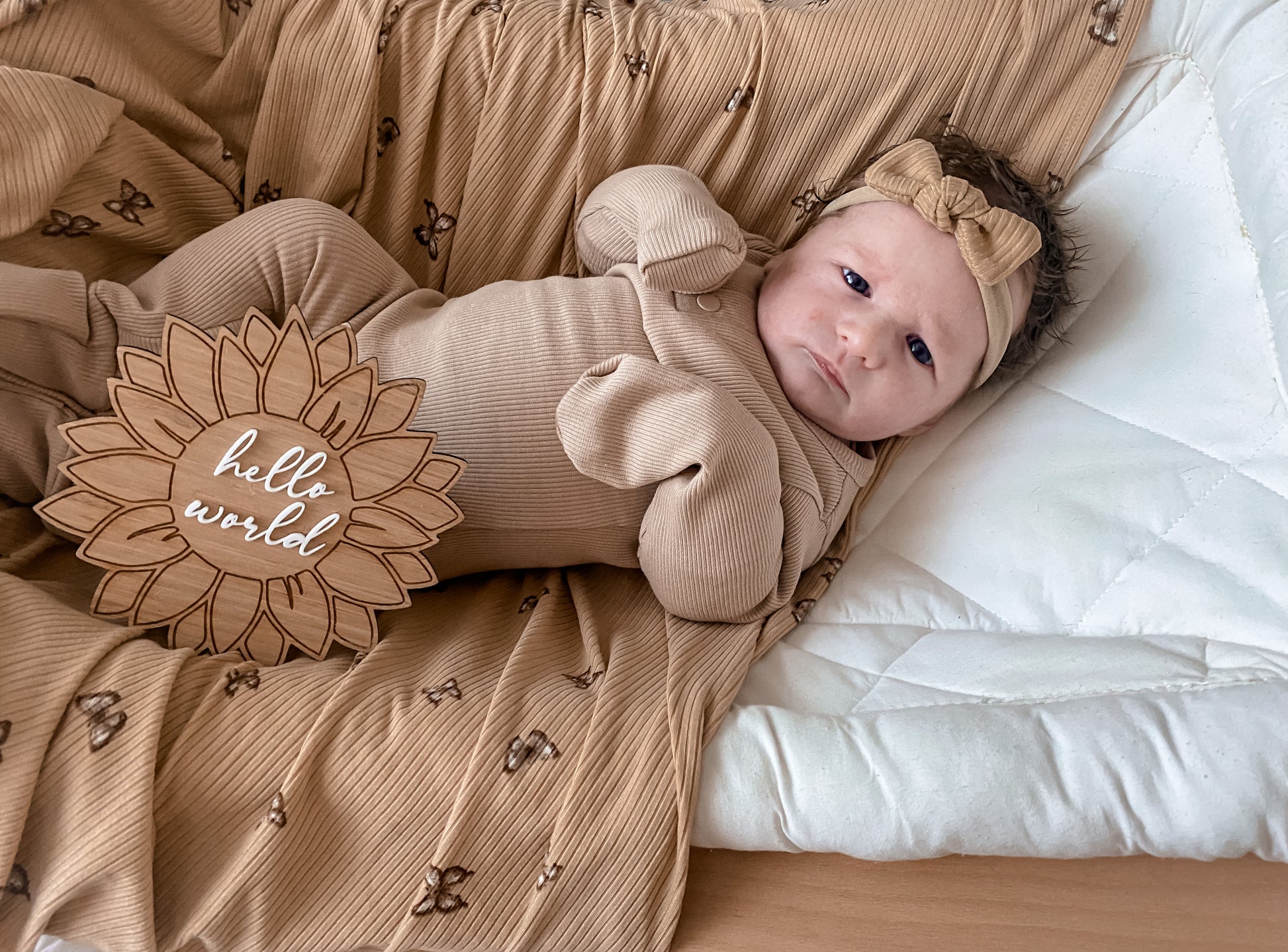 These pretty hand drawn sunflowers are roughly 14cm and on bamboo, it’s such a lovely add on to any birth announcement!