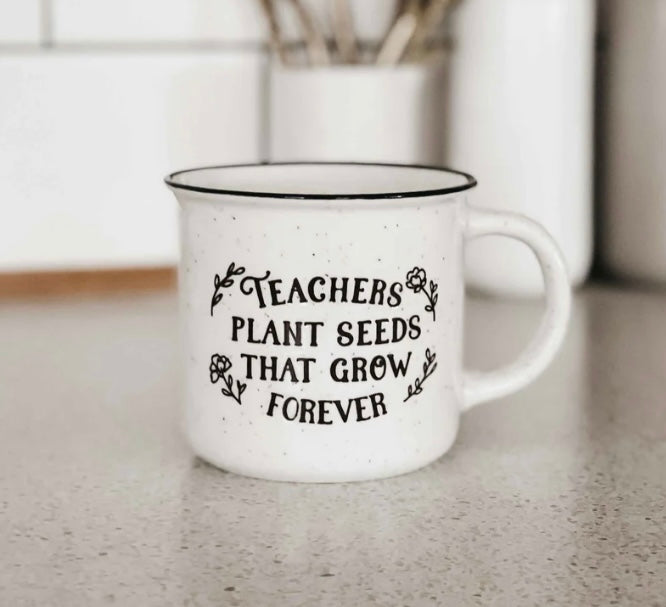 Teachers plant seeds that grow forever sweet ceramic mug, microwave and dishwasher safe.